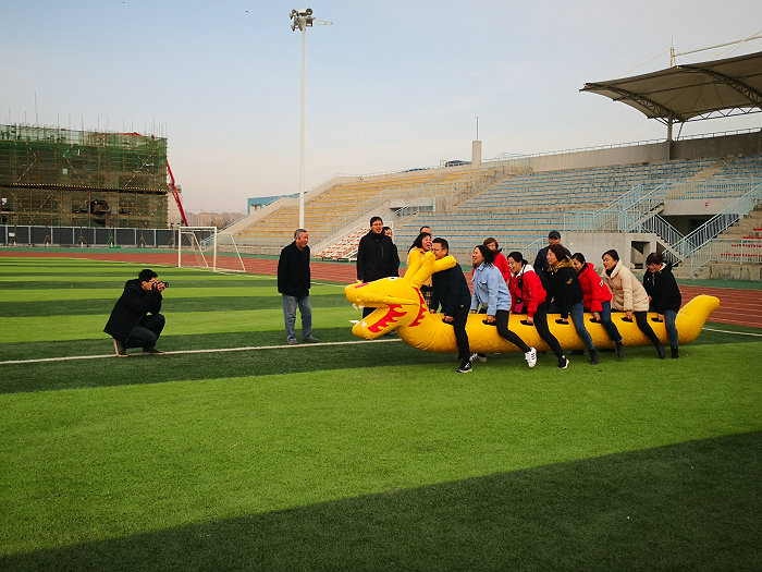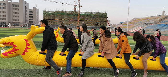 为了推动教职工体育活动的广泛开展,落实《全民健身计划》,增强教职工体质与健康水平,推动校园全民健身运动的全面开展,活跃和丰富教职工的文化娱乐生活。2019年11月27日下午,时博备用网址2019年教职工趣味运动会在唐槐校区运动场上拉开序幕。冬日寒冷的天气,却仍然挡不住教职工们参赛的热情,大家都沉浸在运动带来的乐趣当中。