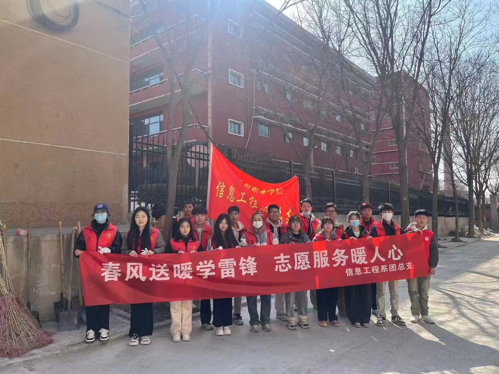 经工会、团委、后勤部、信息工程系、机械工程系的前期协调,信息工程系和机械工程系学生志愿者牺牲周末休息时间,分别在信息工程系书记冯国平、副书记张伟丽和机械工程系书记马存建、副书记张晓红、工会离退休科赵海峰科长的带领下,在坞城、许坦两个家属区开展学雷锋活动,得到两个家属区教职工的一致好评。