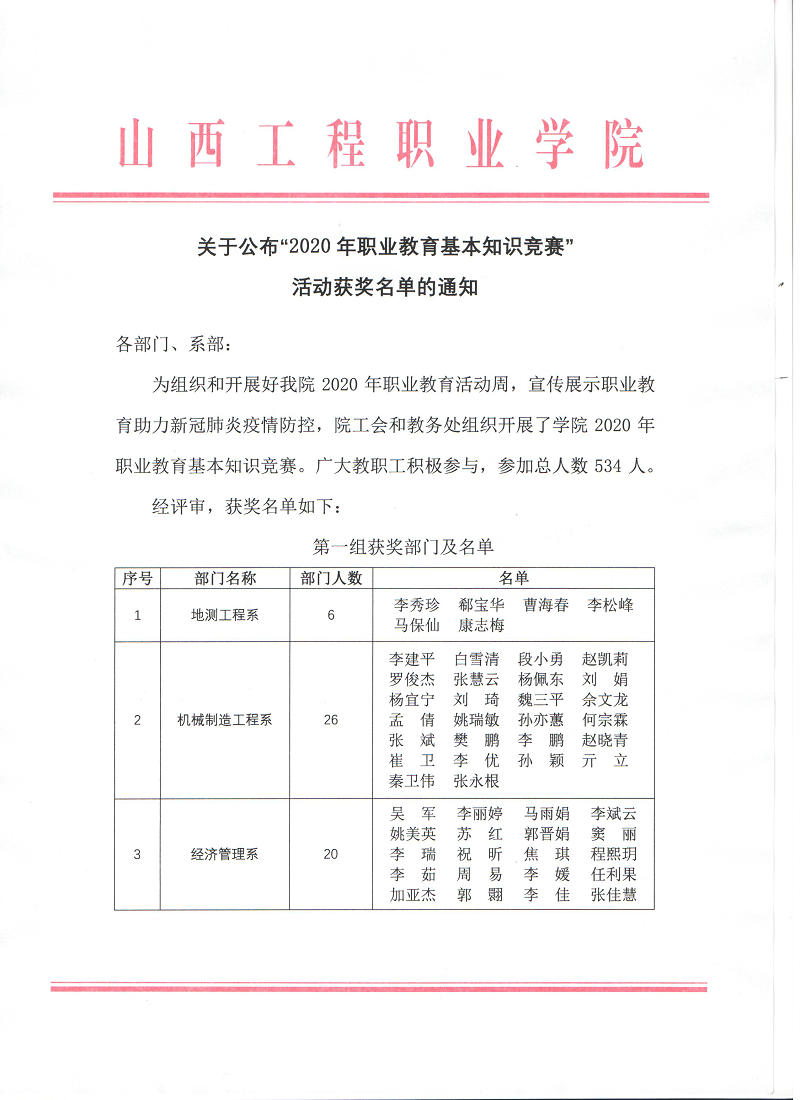 关于公布“2020年职业教育基本知识竞赛”活动获奖名单的通知