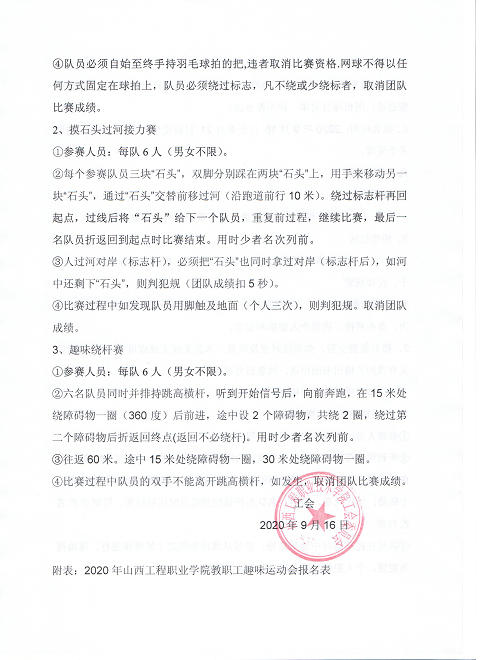2020年山西工程职业学院教职工趣味运动会竞赛规程及通知