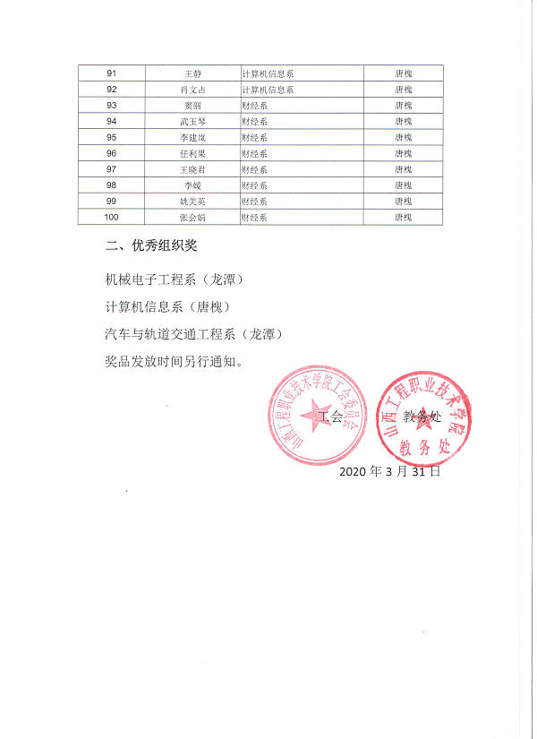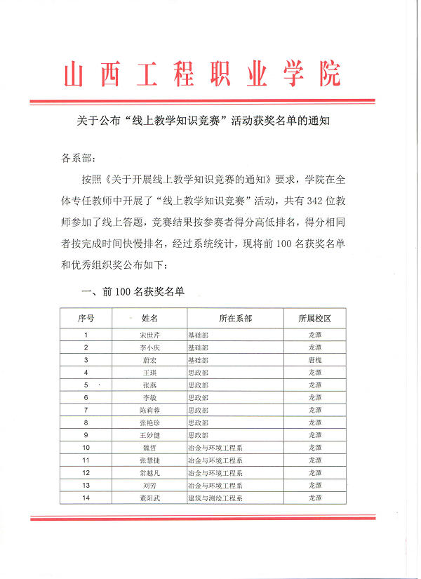 关于公布“线上教学知识竞赛”活动获奖名单的通知