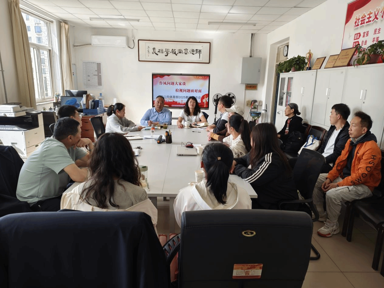 为深入贯彻中央八项规定精神学习教育及作风建设要求,4月23日,公共体育部党支部组织全体教师召开“作风建设大家谈,检视问题面对面”专题讨论暨 2025 年第一次教师座谈会,围绕师德师风、日常工作、处事能力等核心领域开展问题查摆与对策研讨,以严实作风推动部门工作提质增效。
