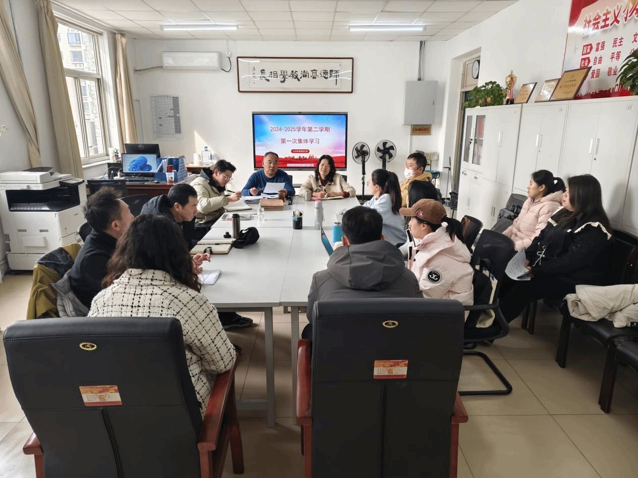 2月19日,公共体育部2025年第一次政治学习在实验楼304办公室举行,由支部书记武泉华和支部组织委员李芳进行领学。