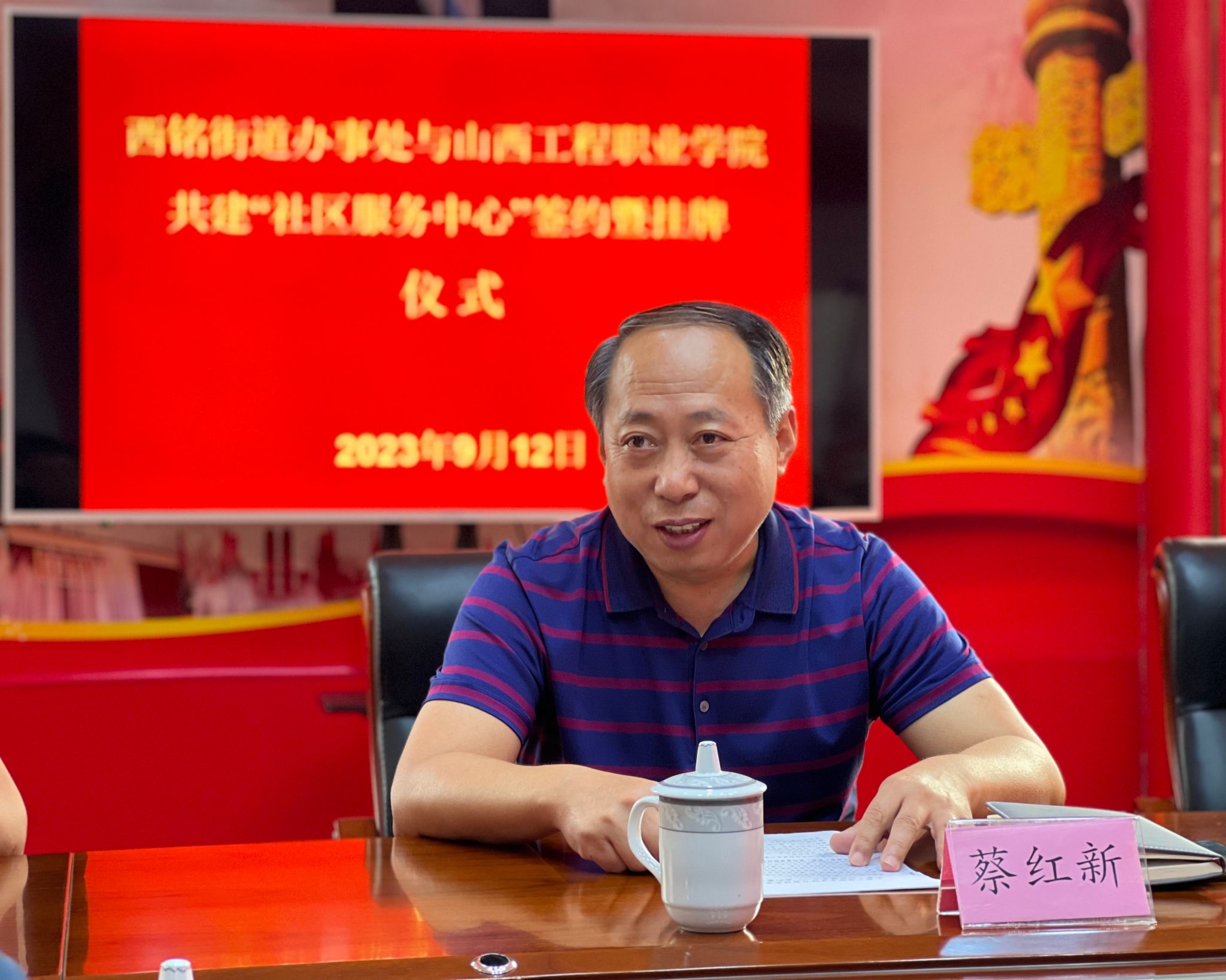 学院副院长蔡红新介绍了学院基本情况、专业群建设、学院发展前景等情况,并展望了“校地结对”的总体发展思路,期望与街道办、社区建立长期合作关系,推动双方互联、互通、互动共赢。蔡红新表示,此次结对共建,体现了高校秉承教书育人和为民服务的宗旨,深度凝聚学院与社区党群力量,搭建起协同共创平台,充分发挥出“社区大党委”的优势,使社区成为高校素质能力提升计划的第二课堂,提升学生综合素质,服务于社区居民。西铭街道办事处党工委书记裴巍伟表示,此次签约,希望通过“校地”共联共建、服务共享,推动双方实现各领域融合、层层结对、事事沟通的区域化党建新格局,持续激发基层治理新活力,共同探索增进民生福祉新模式,进一步推动辖区“大学府”融入“小社区”。随后,双方签约挂牌。