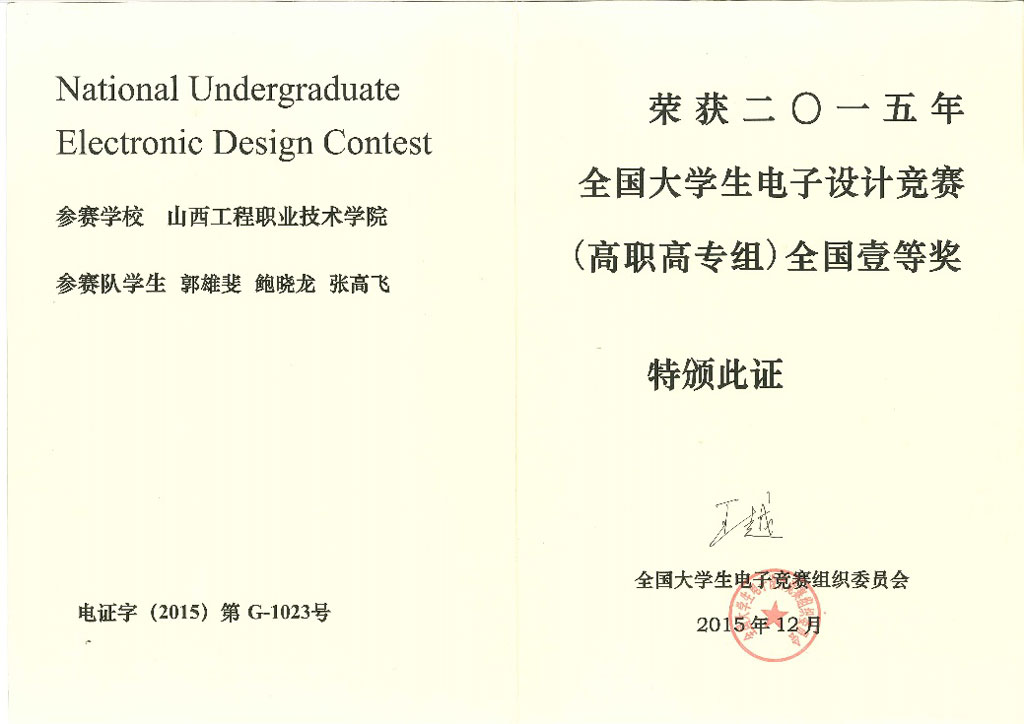 王宇,副教授,入选“三晋英才”拔尖骨干人才;荣获山西省文卫体系统“五一劳动奖章”;获全国职业院校技能大赛职业院校教学能力比赛一等奖1项、二等奖1项;指导学生参加各类大赛获得全国一等奖1项、二等奖5项。主持建设的《单片机应用技术》课程获评国家级精品在线课程。