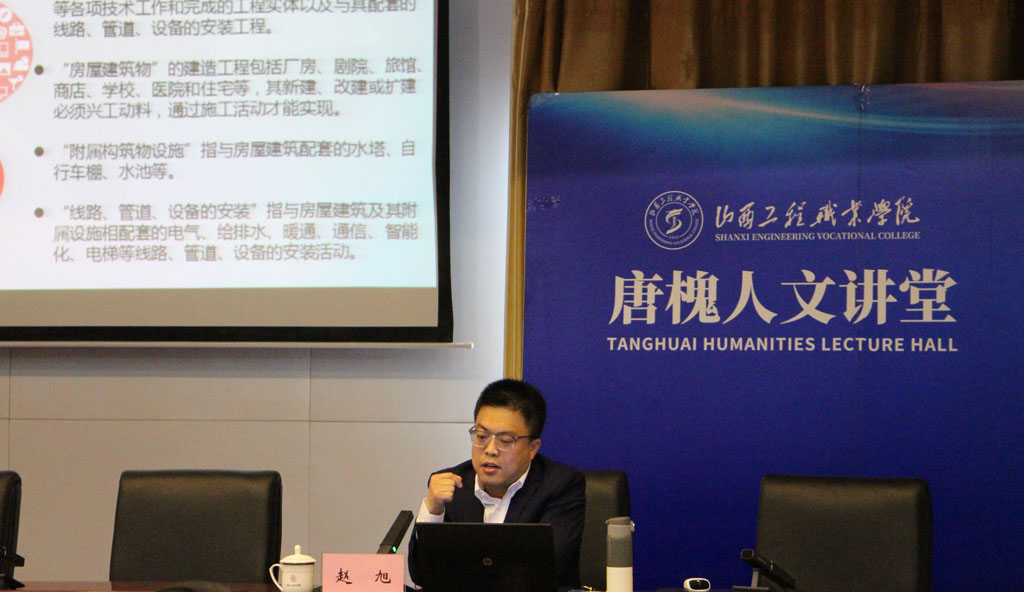 为拓宽同学们专业视野,激发他们在建筑专业领域的探索兴趣,3月22日下午,由建筑工程系主办的唐槐人文讲堂系列讲座之“建设工程法律实务”在龙潭校区图书馆四层报告厅联举行。讲座邀请了北京中伦文德太原律师事务所赵旭律师担任主讲,建筑工程系全体教师、学生代表共500余人聆听讲座,赵连平老师主持讲座。