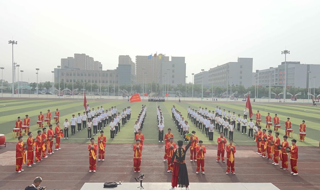 我系"雄鹰锣鼓队"作为弘扬山西传统锣鼓文化的优秀团队,以鼓、大镲、小镲三组乐器震撼开场。队员们身着红黄相间的传统服饰,踏着铿锵有力的步伐列阵步入操场。随着指挥旗挥动锣鼓队同学首先开场造势,顿时鼓声如雷,大镲翻飞,小镲脆鸣,镲鸣镗镗声震云霄,磅礴气势引得全场屏息。
