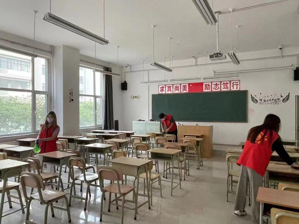 线上学习的日子里,大家还像往常一样早早起床洗漱,按时打卡,戴好口罩坐在教室里,聚精会神地听老师讲课,积极思考,参与互动。下课后,志愿者们主动轮流值日打扫公共区域卫生;进行核酸检测时,志愿者们主动为同学们答疑解难,引导大家有秩序的完成检测,为大家的健康、安全护航;在校园日常生活中,也随处可见志愿者们的身影,他们在校园的每一个角落默默贡献着自己的力量。