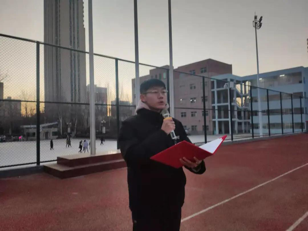 礼毕后,由电气2008班的张珂昕鑫同学进行国旗下的演讲,他感情激昂地向同学们阐述了作为一名大学生应尽的责任和义务。仪式最后由系团总支书记纪郑瑜讲话,他明确强调了疫情期间禁止私自外出,并积极备考迎接考试;至此本次升国旗仪式圆满结束。