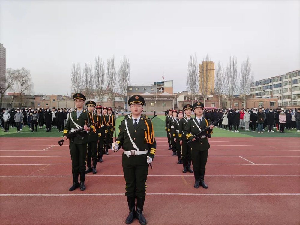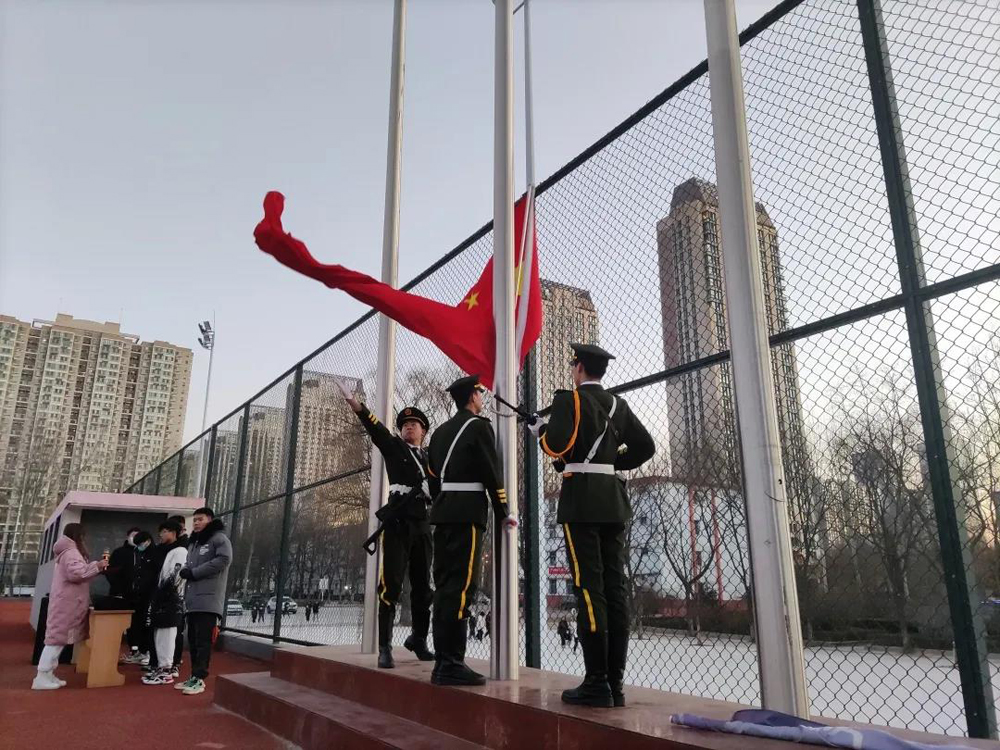 英姿飒爽的国旗护卫队迈着整齐坚定的步伐,缓缓走向升旗台,庄严的《义勇军进行曲》奏响,国旗在慷慨激昂的节奏中缓缓上升,全体师生行注目礼,一抹鲜艳的红色绽放在碧蓝的天空中。