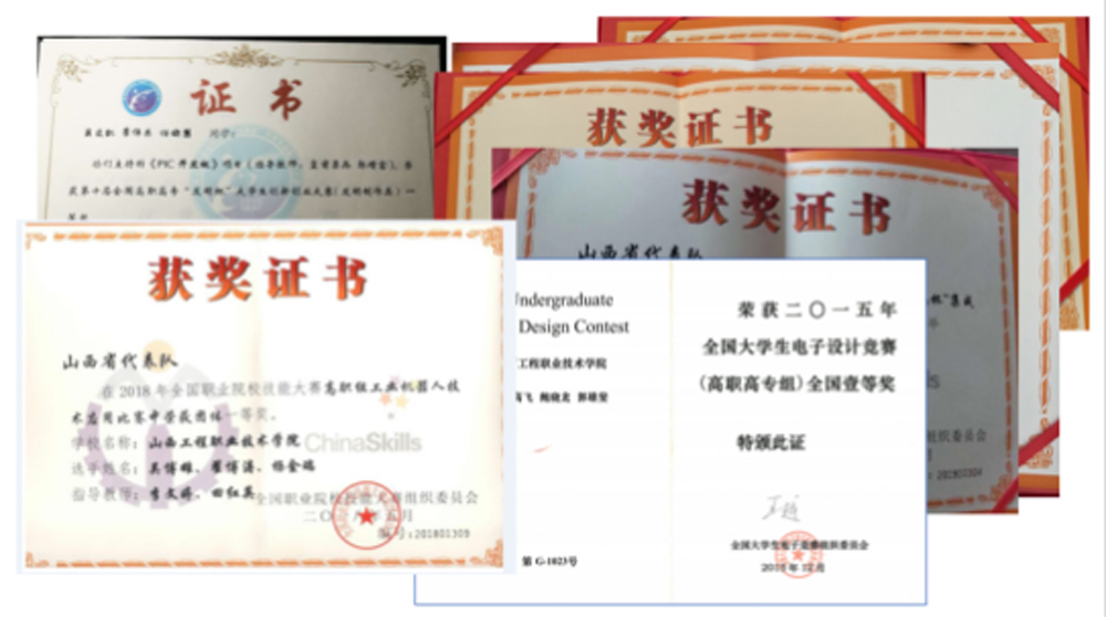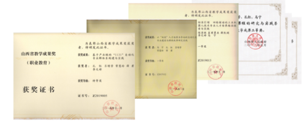 几年来,教学团队成员获得全国教学能力大赛一等奖等6个,全国电路信号系统电磁场教学大赛一等奖,全国职业院校技能大赛工业机器人技术赛项全国第1名,技能大赛类奖项国家一等奖等12个。山西省教学成果特等奖等6个。全国煤炭行业教学成果一等奖等2个。