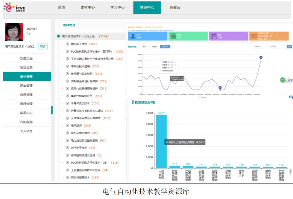 几年来,建成国家精品资源共享课程1门、“优质数字教育资源”课程3门,山西省专业教学资源库1个,山西省精品课程6门。国家规划教材1部,主编教材52部。打造《单片机应用技术》、《PLC控制系统运行与维护》和《模拟电子技术》三门金课,实现模块化课程开发。建成《电气自动化技术教学资源库》拥有课程资源数3481个,习题数2066个,18门线上课程和《PLC控制系统运行与维护》等一批MOOC,推广到河北工业职业技术学院等300多家院校,在线学习者29143人。《模拟电子技术》开课4期,选课学校90所,共有4534人次进行了MOOC课程的学习,SPOC选课总人数16347人,参与互动上万人次。《单片机应用技术》开课三期,累计选课人次4001人,学员单位115个,累计互动2675次,累计日志总数161972次,资源总数224个。学院教师主编《传感器与自动检测》教材拟入选国家职业教育“十三五”规划教材。