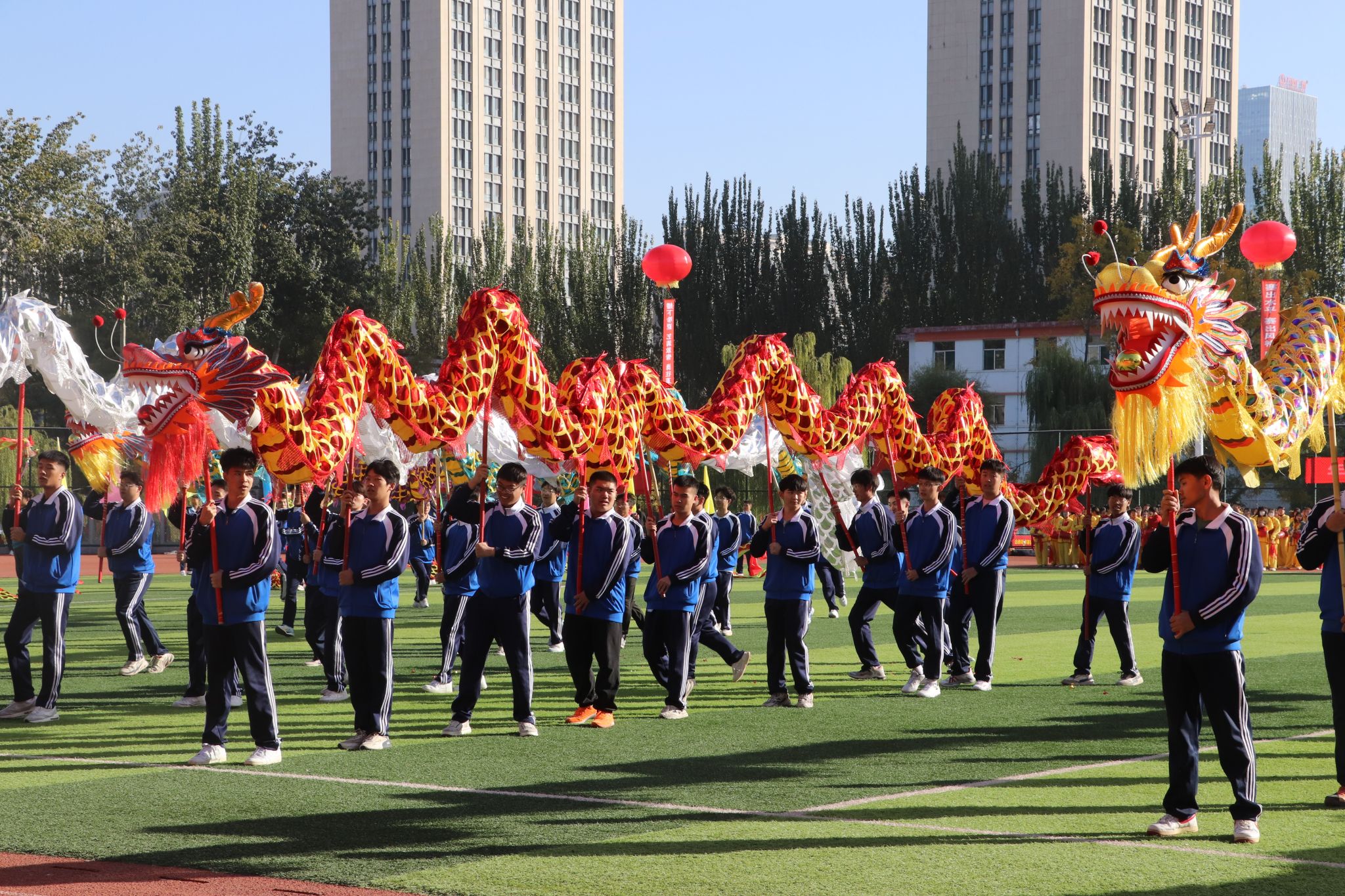 电气工程系团总支龙潭舞龙社通过一条条或上下翻飞,或蜿蜒盘旋的巨龙,传递着中华民族团结向上的精神,预祝学院2023年秋季运动会圆满完成,各位运动健儿取得优异成绩。