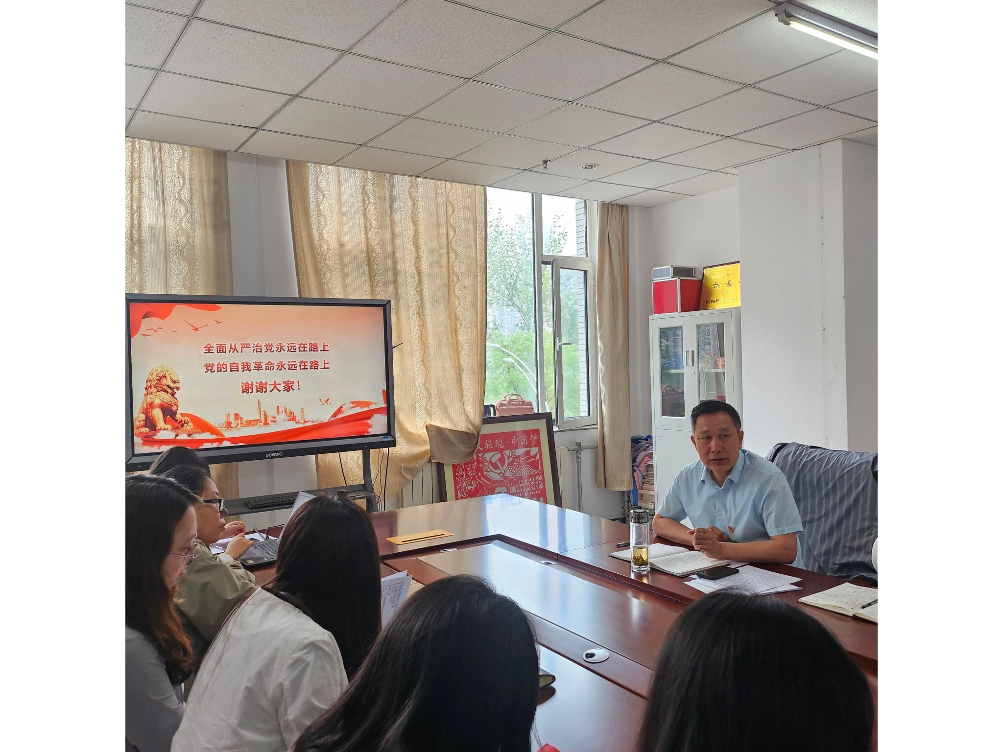 系党总支书记肖占胜主持并发表了题为《知纪懂纪在心,守纪遵纪在行,为推动系部高质量发展提供有力保障》的讲话。肖占胜强调,要从四个方面谋划好、组织好、落实好党纪学习教育。一是提高政治站位,深刻领悟党纪学习教育的重大意义;二是把握目标要求,交出党纪学习教育的优异答卷;三是实现有机融合,一体化推进党纪学习教育的四项任务;四是加强组织领导,强化党纪学习教育的“四个保障”。