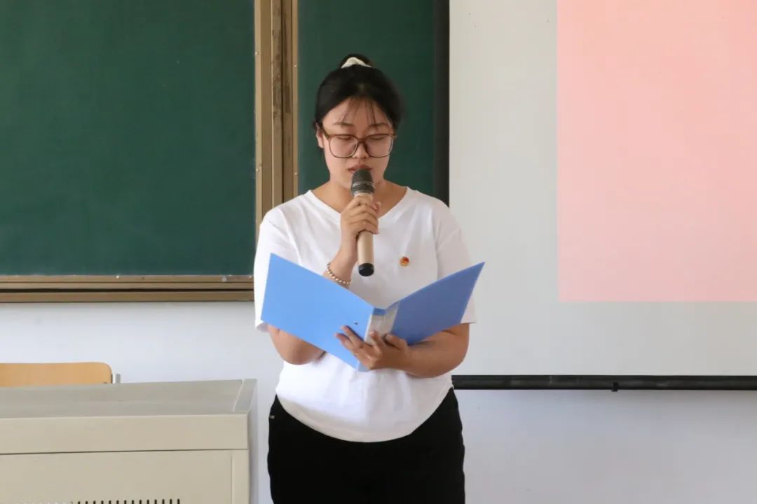 第四项,组织员兼本次培训班主任李茜宣读本次入党积极分子培训方案。她对教学安排、分组讨论、结业考试等具体事项作了详细说明,并呼吁同学们以更高标准、更严要求、更好作风完成学习任务。