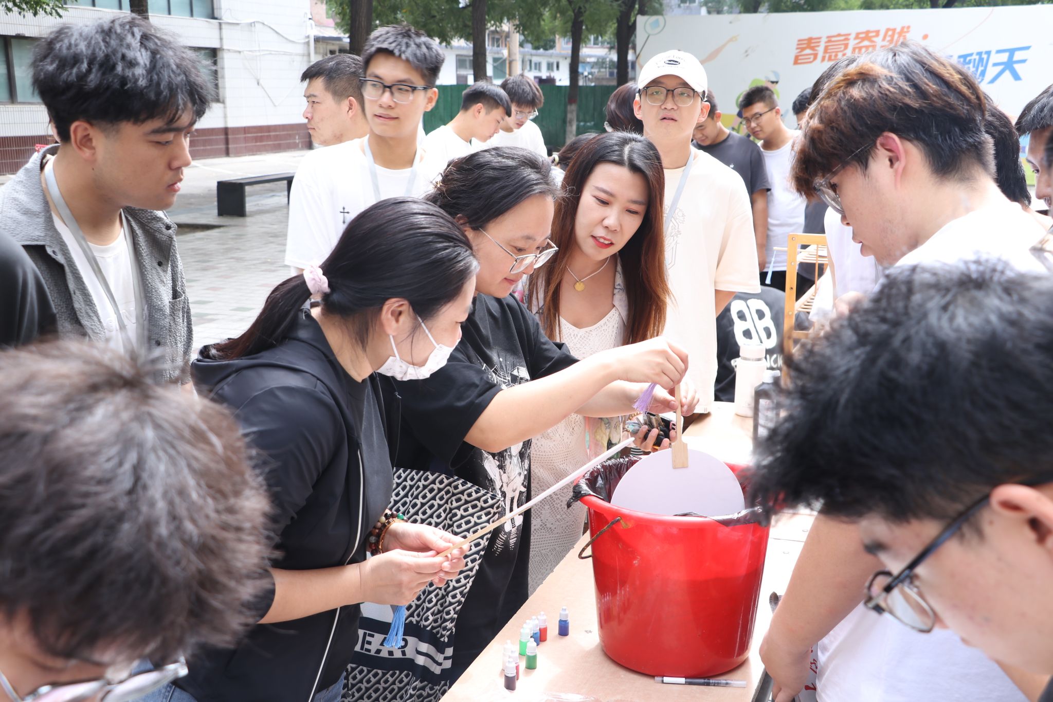 活动伊始,主持人向在场的师生详细讲解了漆扇的制作流程,以生动的语言,将这一古老技艺的魅力展现得淋漓尽致,激发了大家浓厚的兴趣。随后,韩永清书记手执扇骨,细心地在清水中调配颜色,挑选了心仪的扇面,以染料浸染,一扇颇有意境的漆扇呈现眼前,并将这份美好寓意的扇子赠与学生,带领大家共同体验这项传统工艺的魅力。