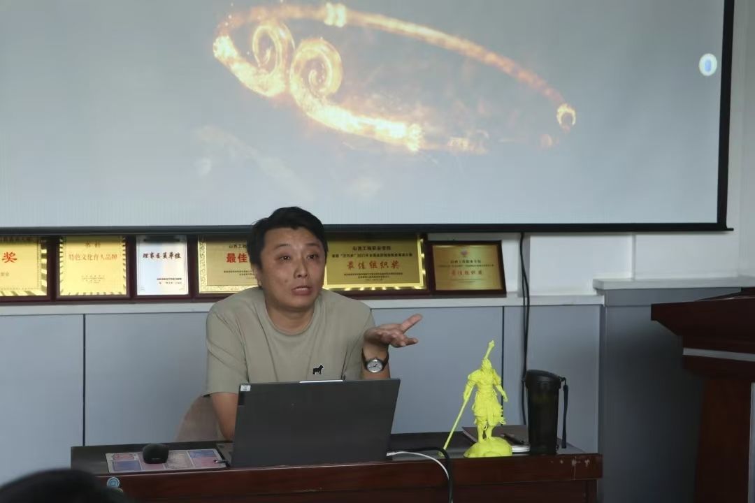 纪郑瑜老师以《黑神话:悟空》这款游戏为窗口,向大家展示了一个历史文化悠久的山西。通过与学生互动,鼓励学生分享自己对山西的初步印象与看法,激发了学生们对这片土地浓厚的探索欲。同时,他结合个人的亲身经历与见闻,讲述了这些年山西所经历的变化。并通过介绍这款游戏介绍,特别是游戏中多处取景地源自山西的壮丽景观——悬空寺、铁佛寺、小西天与云冈石窟,引领我们走进了一个前所未见、魅力独特的山西,也认识到山西背后深厚的文化底蕴。