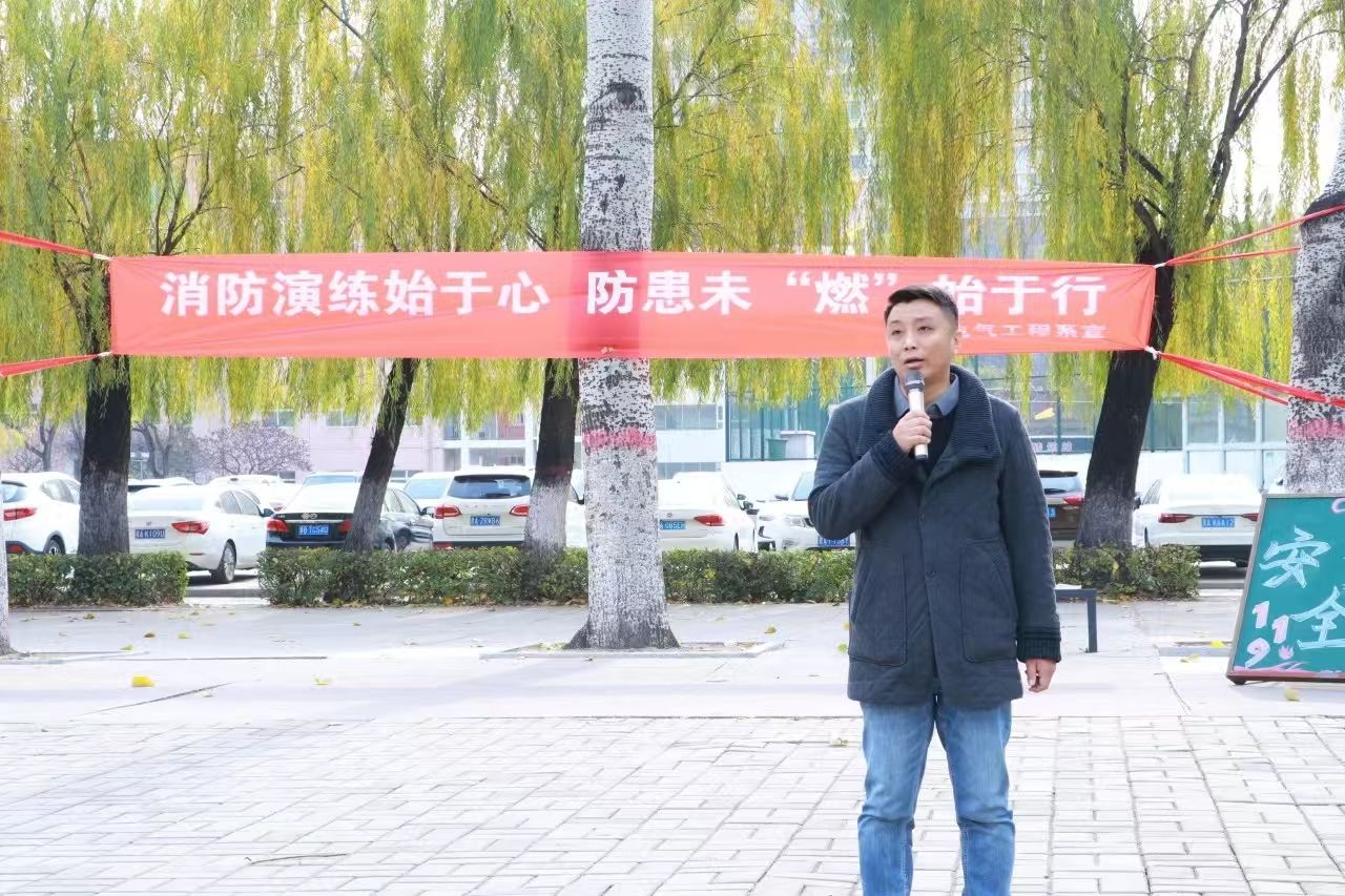 为深入贯彻落实习近平总书记关于安全生产和消防安全重要指示精神,进一步提升广大师生消防安全意识和自防自救能力,切实筑牢校园消防安全防线,11月18日,电气工程系开展“消防演练始于心,防患未‘燃’治于行”活动。系党总支副书记纪郑瑜、团总支书记刘媛媛、辅导员药丹及大一全体学生参加本次演练,校卫队人员到场协助。本次活动由电气2401班来孜娜·库尔班主持。