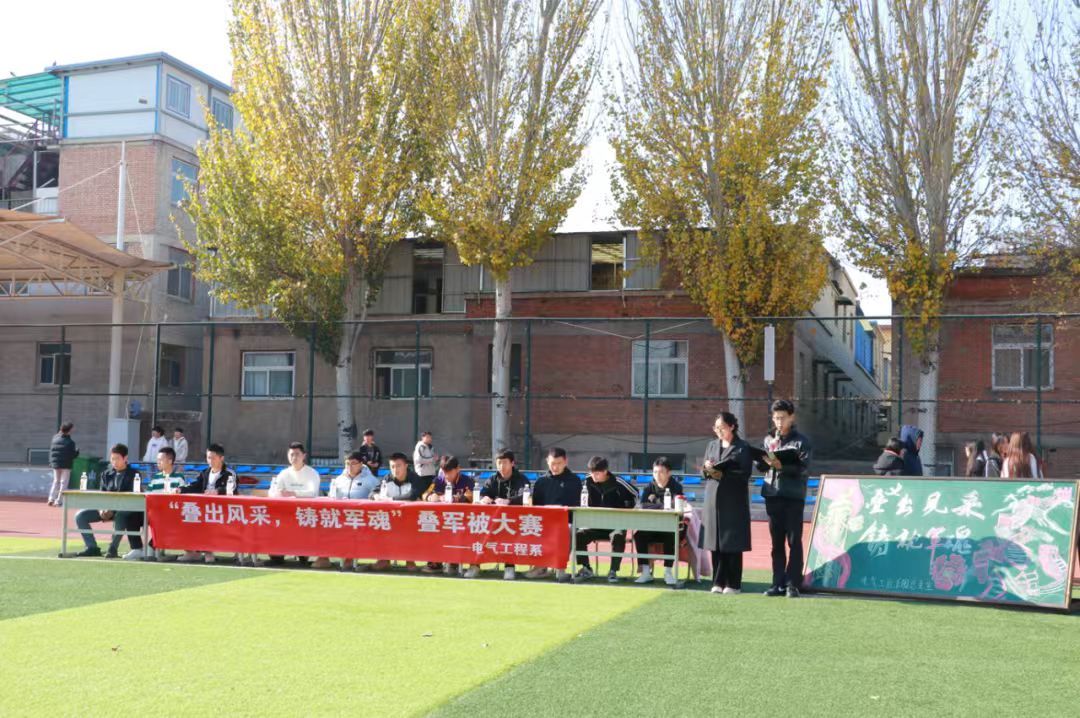 为强化学生的规范意识和自律观念,充分发挥学生寝室的育人功能,电气工程系于11月26日在足球场举行“叠出风采,展我军荣”叠军被大赛。大赛特邀12名退伍大学生担任评委,50余名参赛选手在赛场上展开激烈角逐。