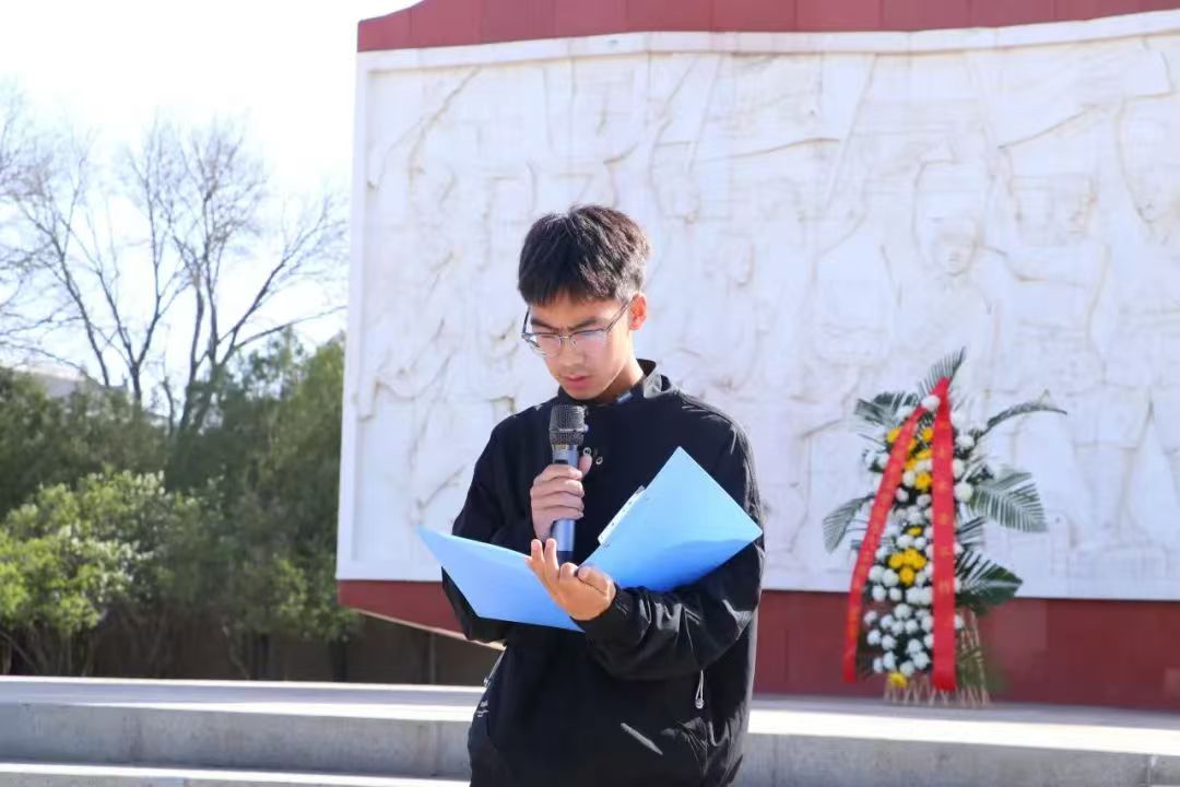 学生代表秦雨晨发言表示,“站在先烈热血浸染的土地上,我们铭记‘天下虽安,忘战必危’,以先辈为榜样,用专业守护国家安全,让青春在奉献中绽放光彩。”