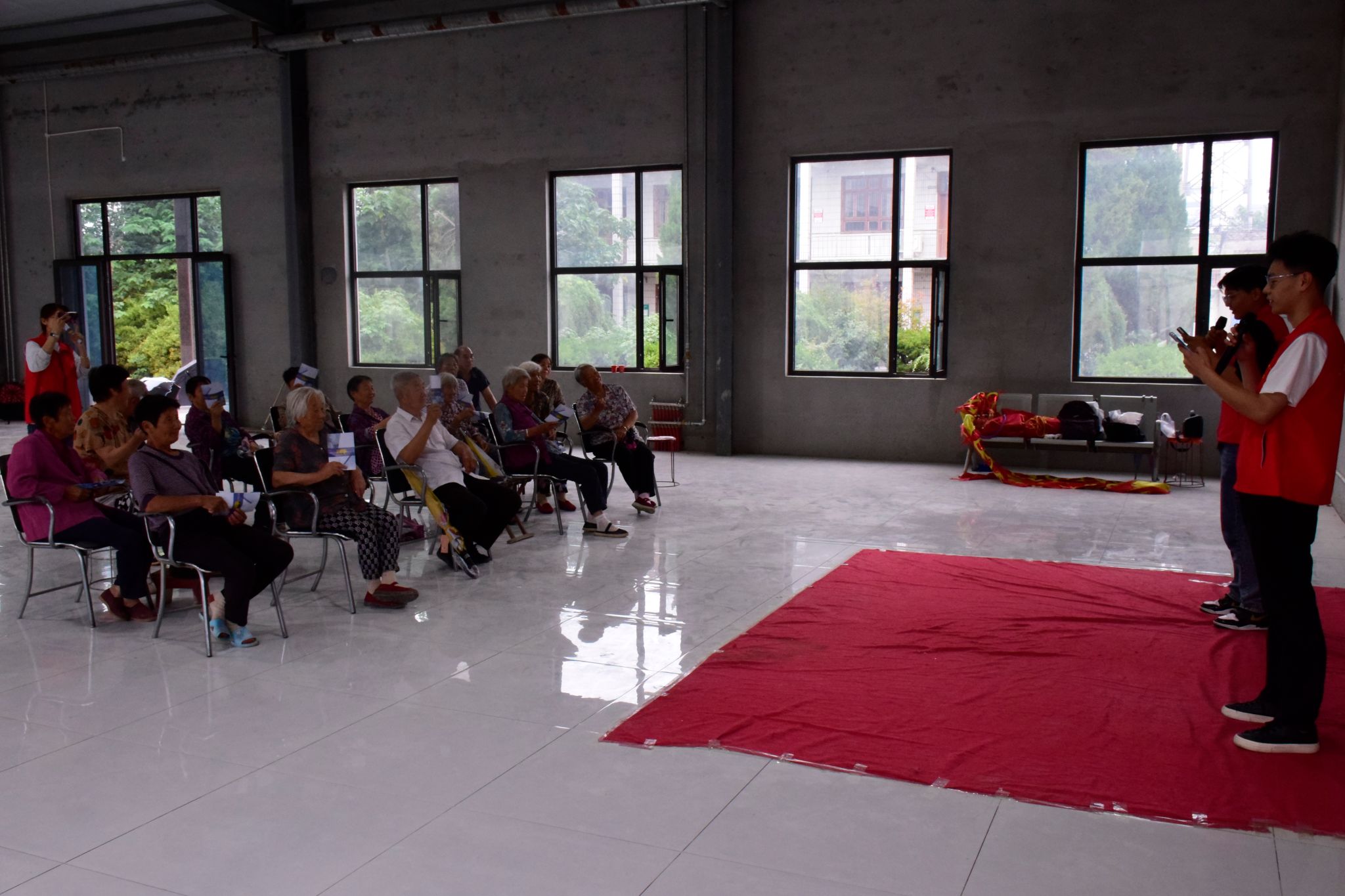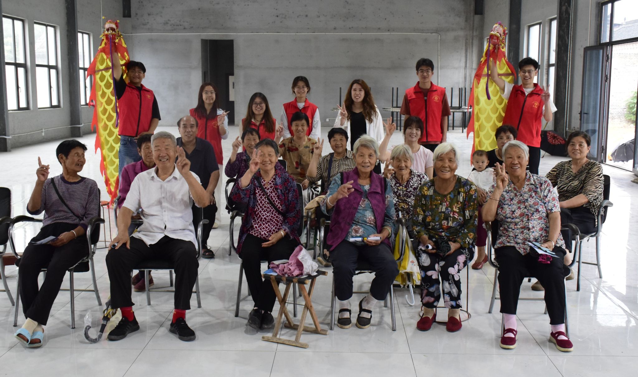 实践队精心组织非遗文化体验与红色精神传承活动。在村活动室,队员们进行了精彩的彩带龙表演,其灵动舞姿赢得阵阵喝彩。表演后,邀请村民共同学习体验,现场气氛热烈,有效推广了非遗文化。随后,实践队与村民共同唱响《我的中国心》《歌唱祖国》等经典曲目。激昂的旋律引发强烈共鸣,大家在歌声中凝聚爱国情怀。