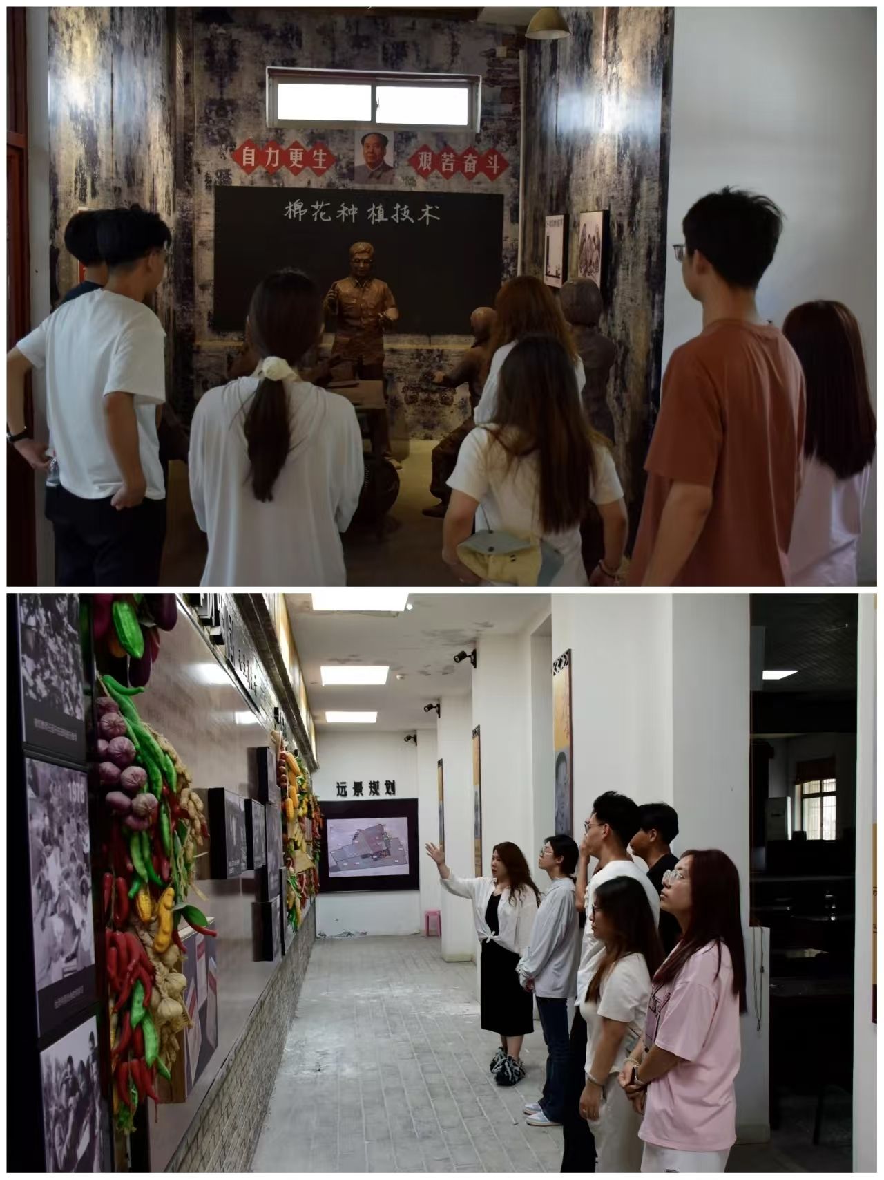 抵达西张耿村后,刘媛媛老师带领学生参观农业技术夜校。棉花技术培训课堂上,农民学员专注学习的身影,彰显夜校“技术兴农”的使命。文化长廊中,泛黄的老照片与文献资料,勾勒出夜校从建国初期克服物资匮乏组织村民学技术,到新时代开展现代化培训的奋斗轨迹。作为“全中国第一技术夜校”,这里不仅是农技推广摇篮,更以艰苦奋斗、自力更生的红色精神为内核,将知识扎根乡土。