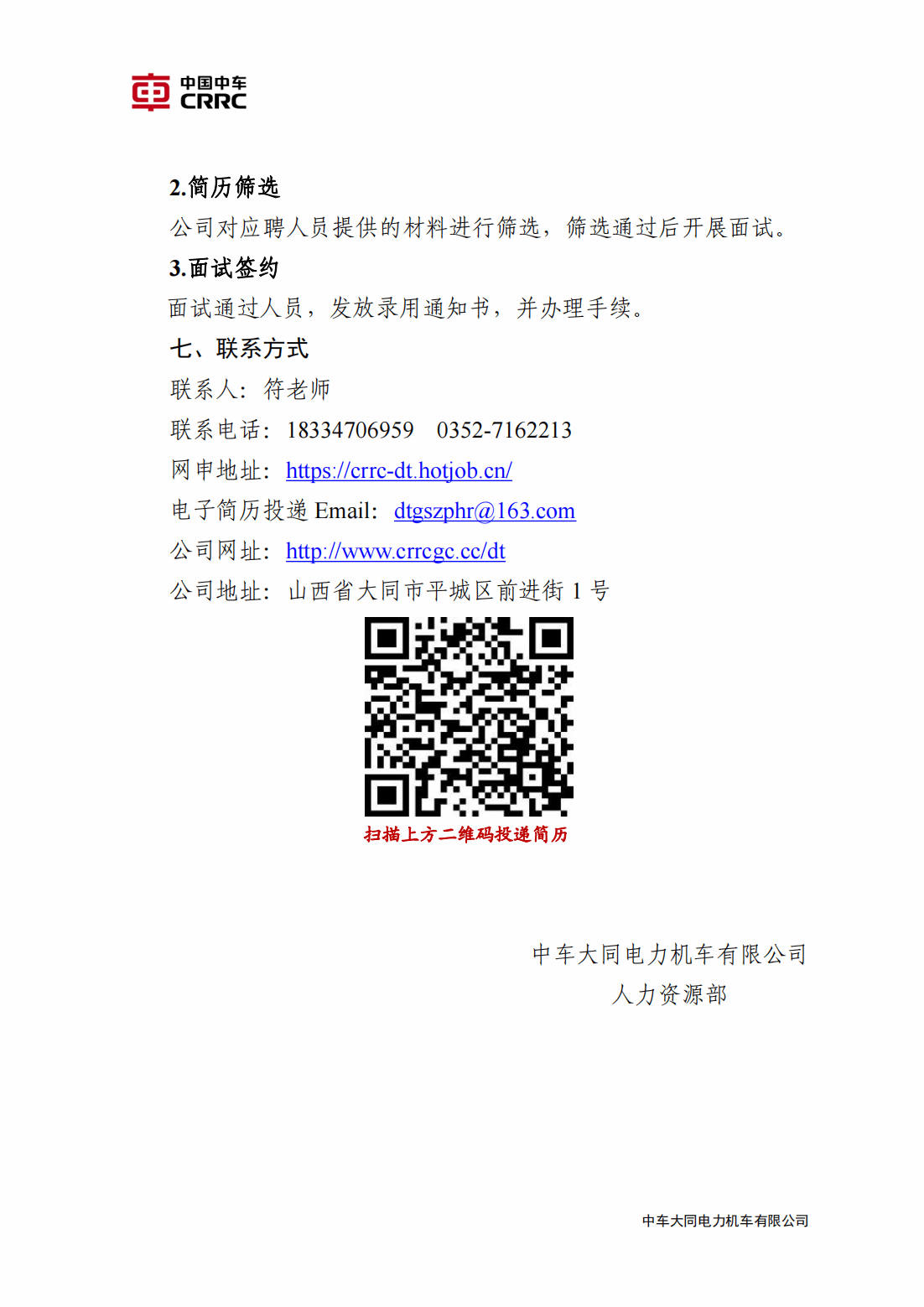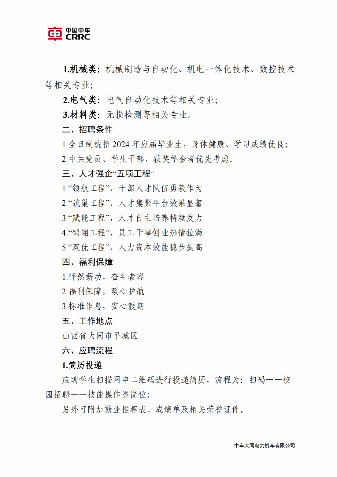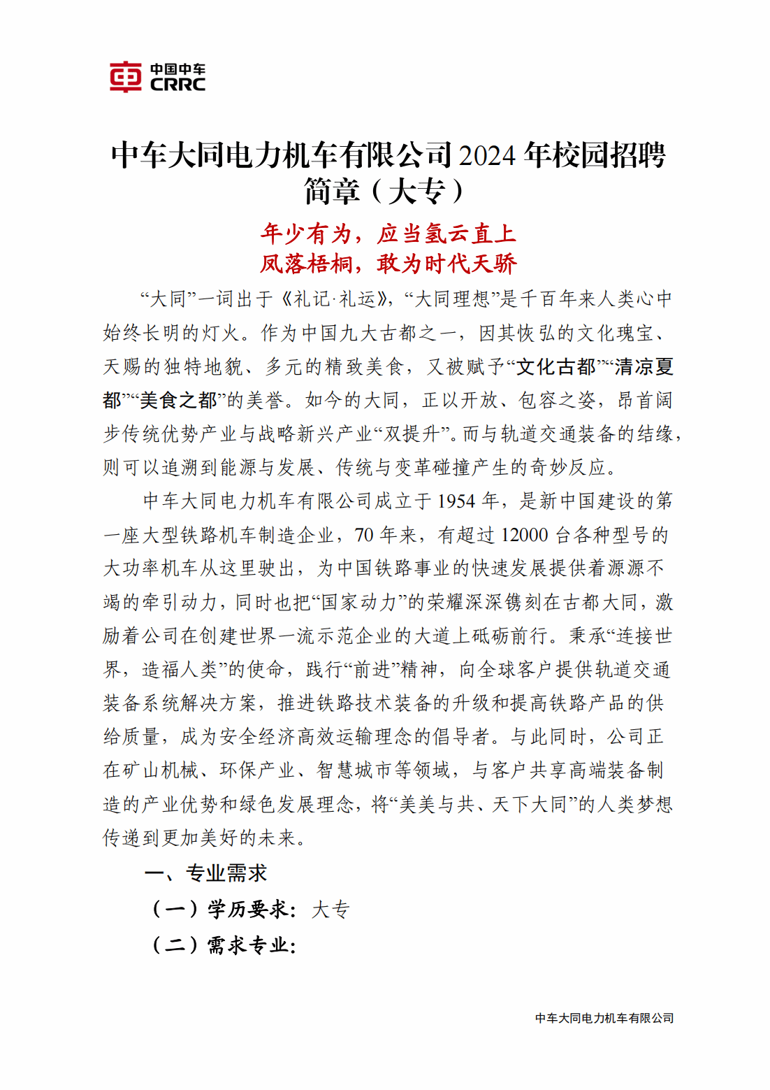 中车大同电力机车有限公司2024年校园招聘简章(大专)