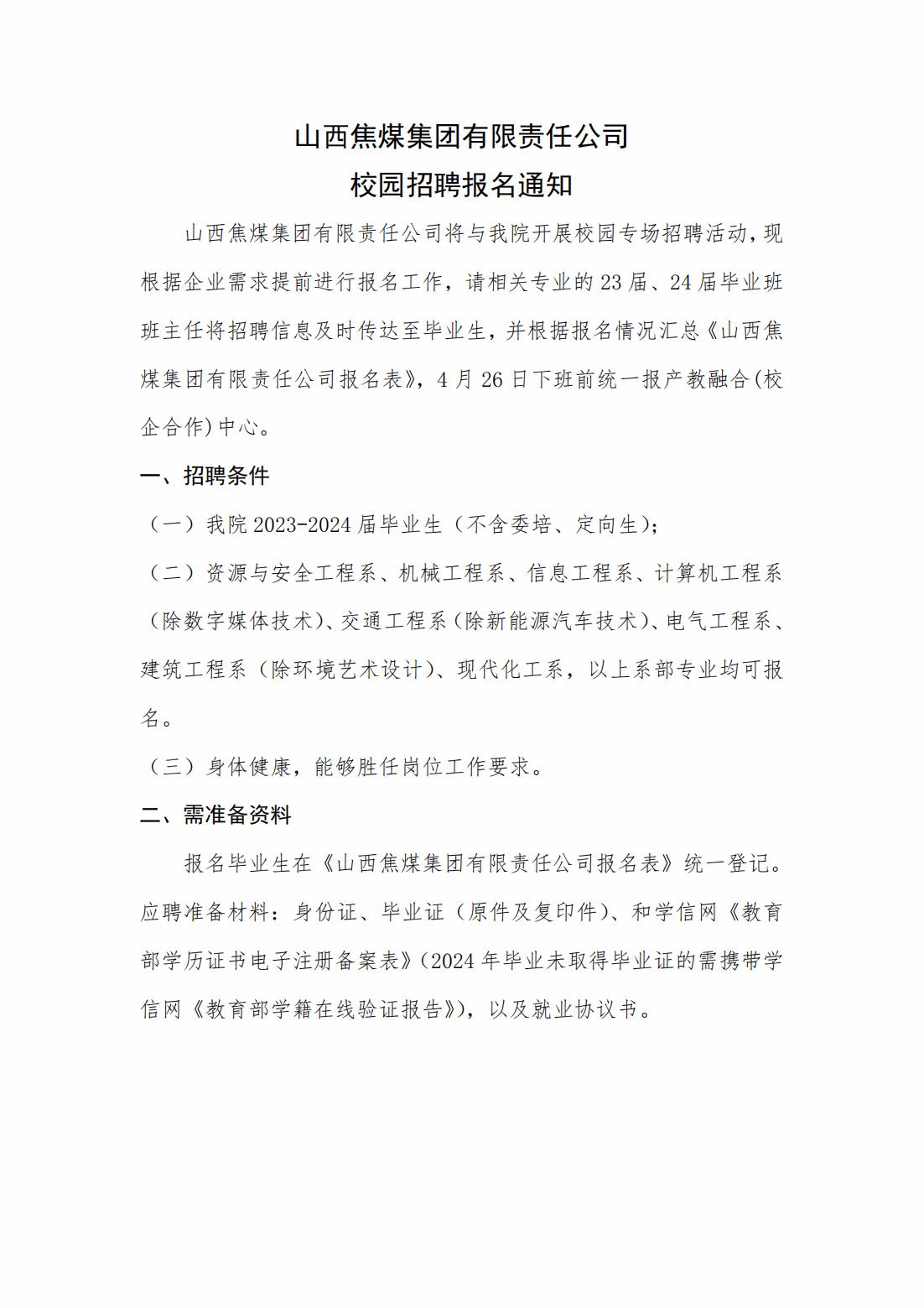 山西焦煤集团有限责任公司校园招聘报名通知