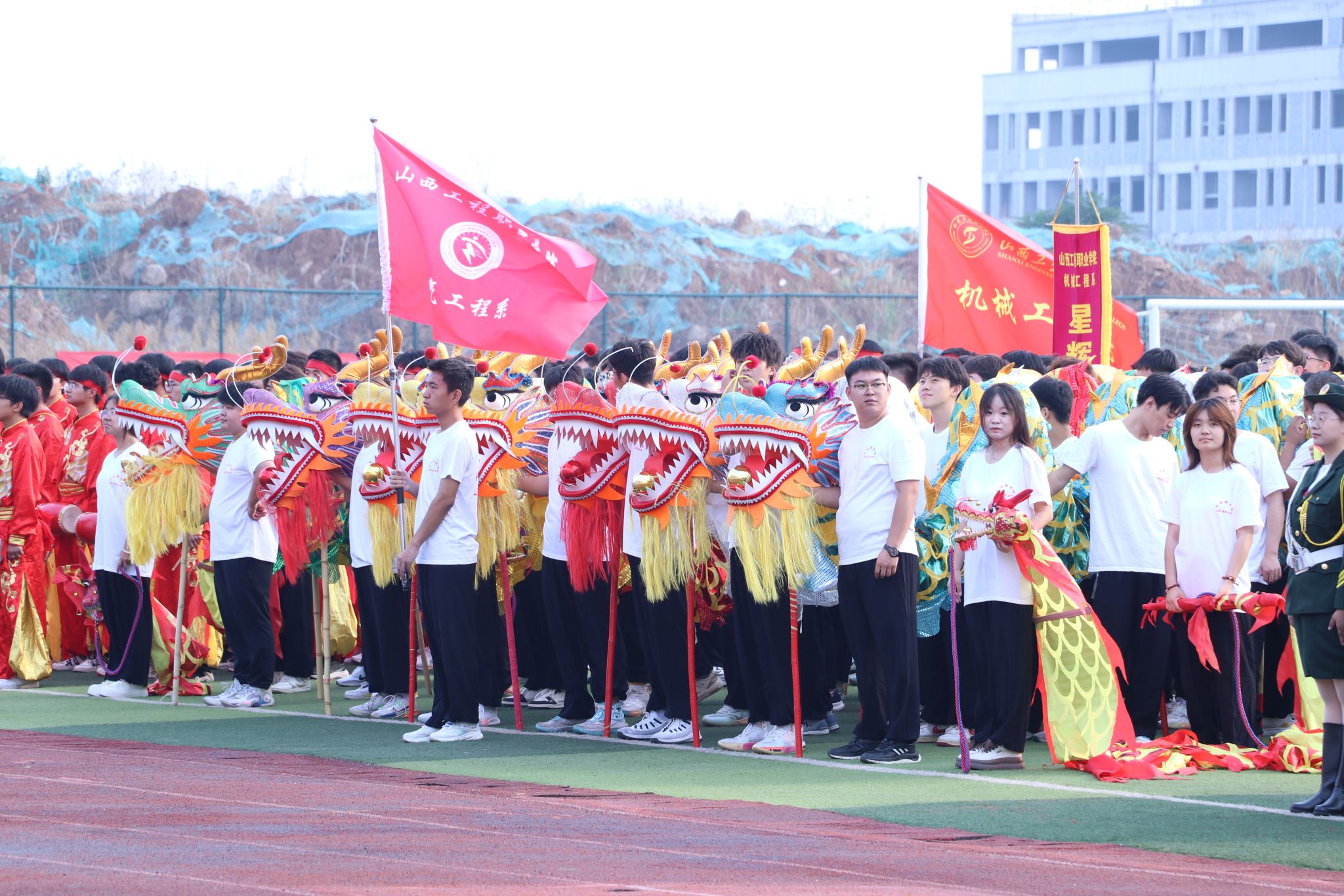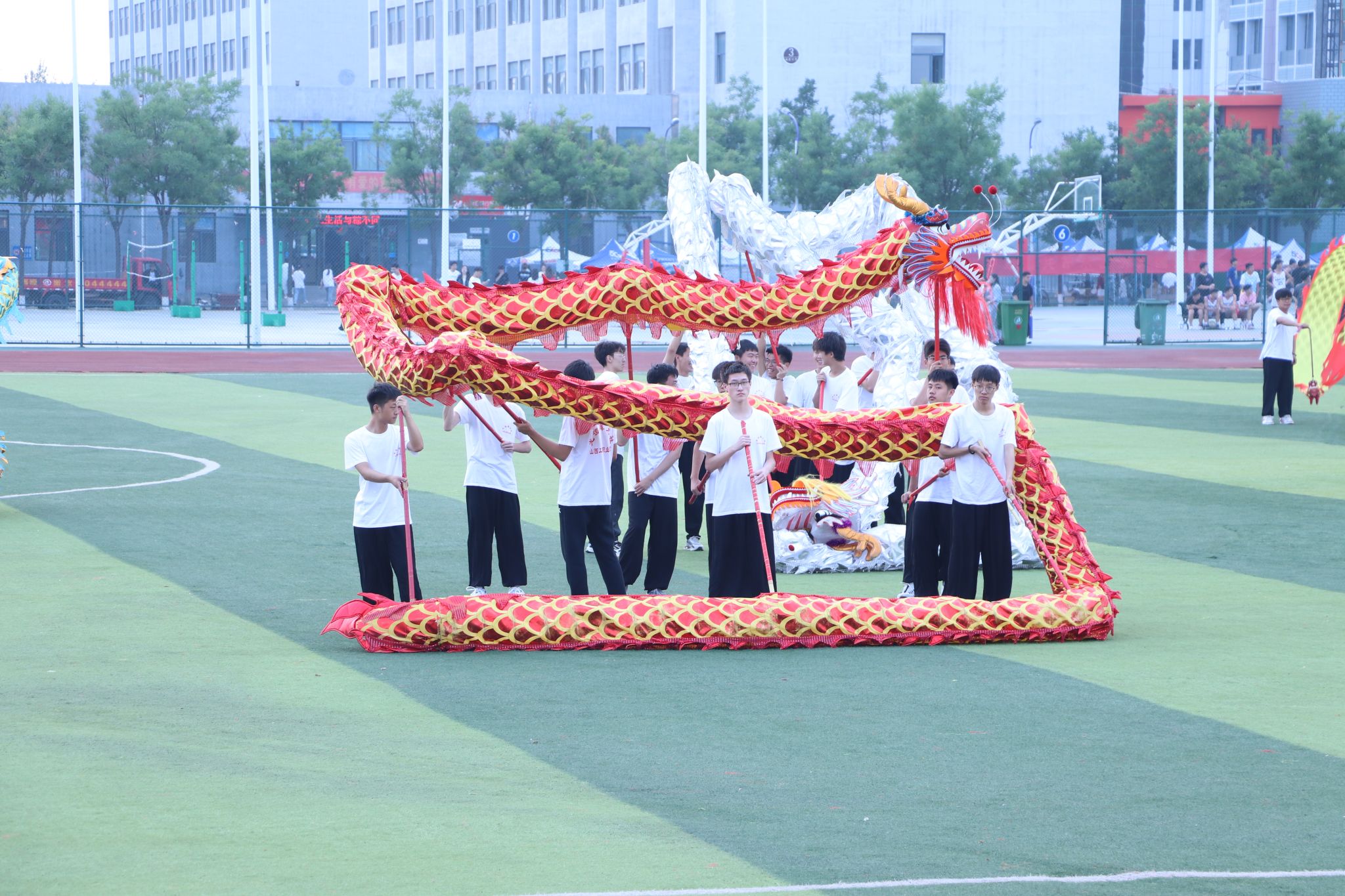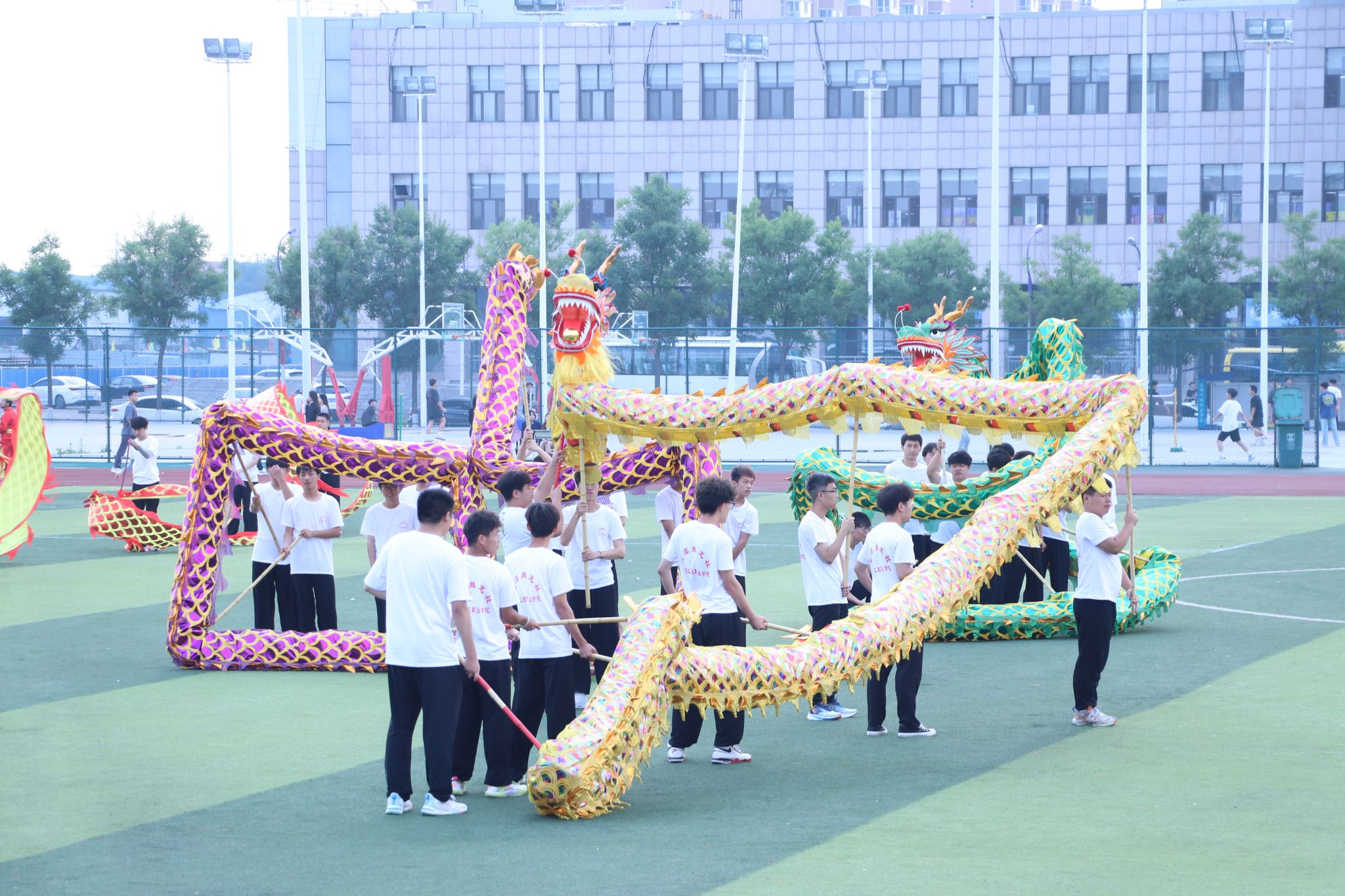 本次表演共分为五幕,第一幕为翻江倒海,寓意着在危难中有恒心与毅力,积蓄力量,战胜困难,成就一番大作为。第二幕是在场地前方呈现汉字“中”“国”以及五角星图形,场地后侧屹立三座高山,代表山西太行山脉,整幕寓意望太行之巅巨龙盘旋其中。第三幕为首尾穿身,寓意着群贤共济、圆满如意的盛世景象。第四幕为群龙赛舟,中间盘踞着一条龙,以上龙杆的技巧动作彰显奋进向上的力量,周围由六条龙舟包围,寓意着齐心协力、同舟共济的精神。第五幕为场地前方是数字“7”“5”,场地后方两条龙高高盘起纪念新中国成立75周年,祝愿祖国繁荣昌盛。每一幕表演都切实展现出我系学子凭借灵动的舞姿,源源不断地传递着团结、拼搏的强大精神力量。