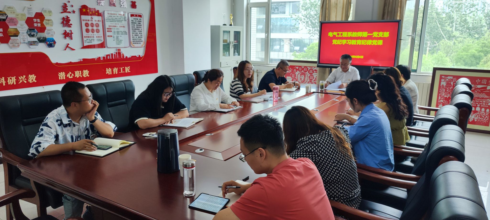 为深入学习贯彻习近平总书记关于党纪学习教育的重要讲话和重要指示精神,扎实开展党纪学习教育,按照院党委关于党纪学习教育的相关工作安排,6月6日,党委书记韩永清在行政楼三层党建活动室为电气工程系教师第一党支部全体党员讲授了“深化党纪学习教育 以新作为新作风推动事业发展”为主题的纪律党课。