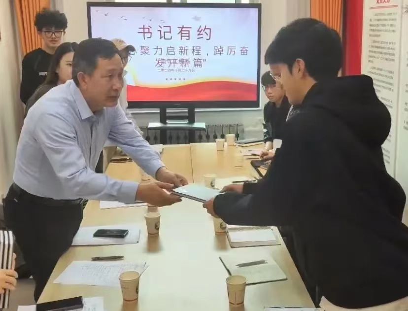 为深入贯彻二十届三中全会关于习近平总书记对于教育的谈话精神,10月29日,电气工程系在“一站式”学生社区党建活动室以“凝心聚力启新程,踔厉奋发开新篇”为主题开展“书记有约”活动。系党总支书记肖占胜、系党总支副书记纪郑瑜、团总支书记刘媛媛、全体专职辅导员及10余名学生代表参加活动。本次活动由刘媛媛主持。