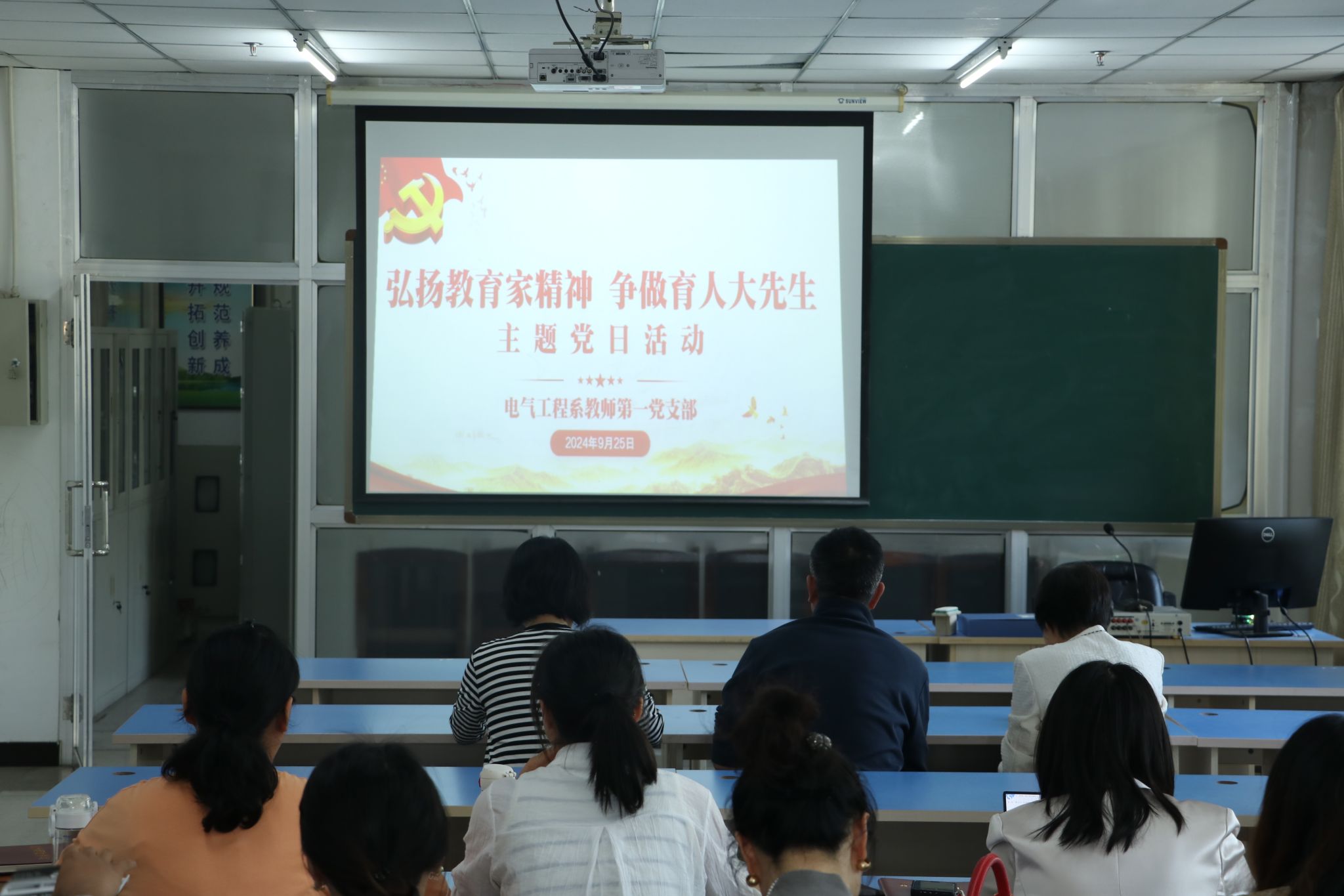 为深入贯彻党的二十届三中全会精神,积极响应习近平总书记关于教育的重要论述,电气工程系于9月25日下午,在行政楼二层供配电实训室开展以“弘扬教育家精神,共筑教育强国梦”为主题的党日活动,系全体教师参加。