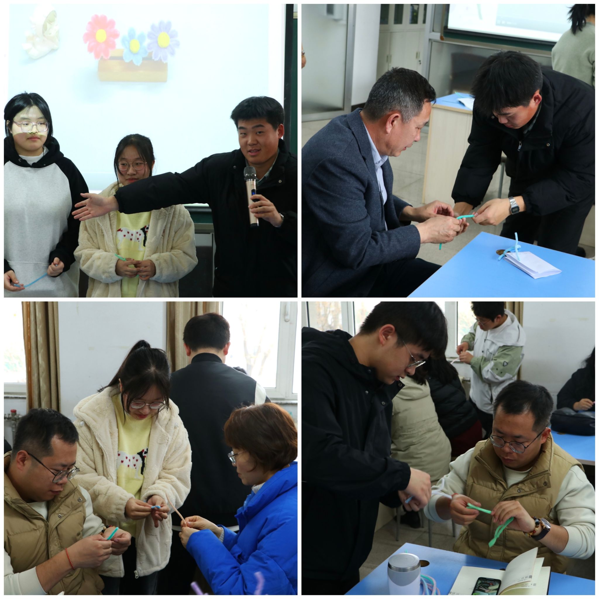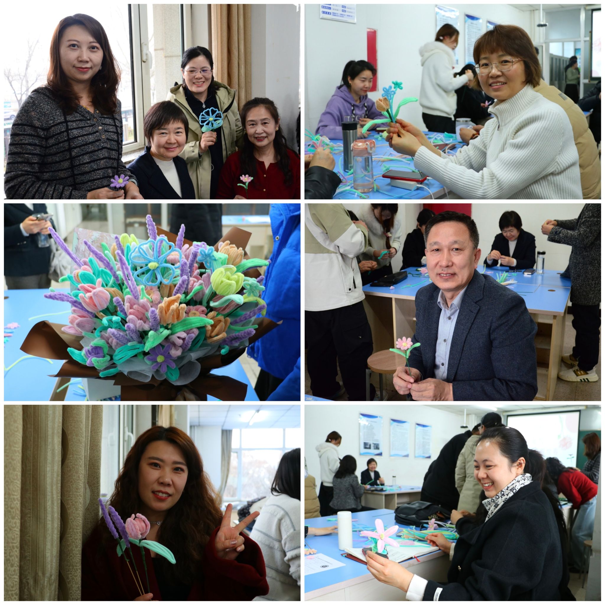工制作环节。学生志愿者组成“小师傅团队”,对老师们进行现场编花教学。接着,老师们利用五颜六色的扭扭棒开始制作,这些看似普通的材料在大家的巧手中逐渐变成了一朵朵栩栩如生的花朵。学生们耐心指导,与老师们的心灵距离更加贴近。这些手工花朵不仅展现了大家的创造力和动手能力,也象征着电气工程系女性的坚韧与美丽,凝结着师生浓浓的情谊。手工制作结束后现场教师合影留念。