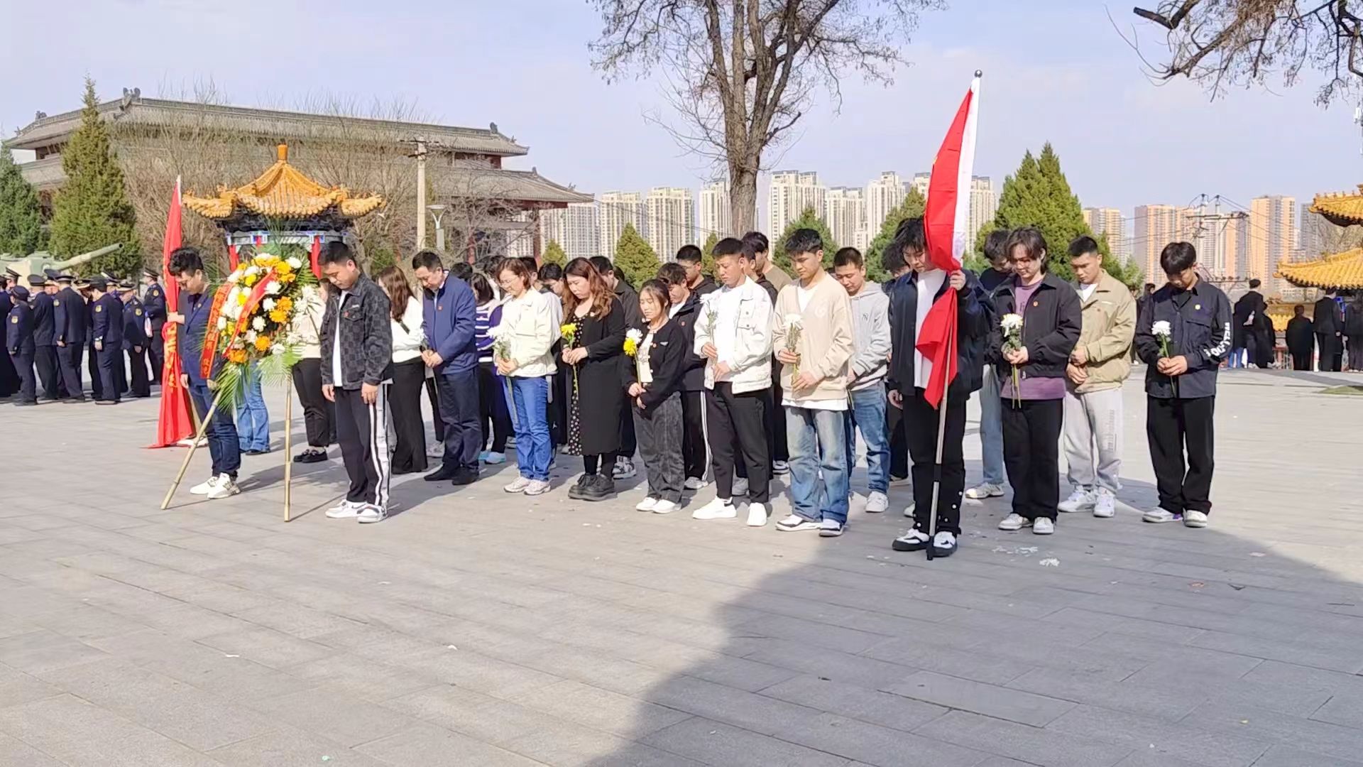 祭英烈,致哀思。在革命烈士纪念碑前,全体师生行鞠躬礼、肃立默哀,缅怀英烈。默哀结束后,由教师党员代表王沛元和入党积极分子代表何波向革命先烈敬献花圈,系党总支书记肖占胜上前整理挽联。随后,全体师生双手持菊花、缓步绕行瞻仰革命烈士纪念碑,并以鲜花奠英雄,深情寄哀思。