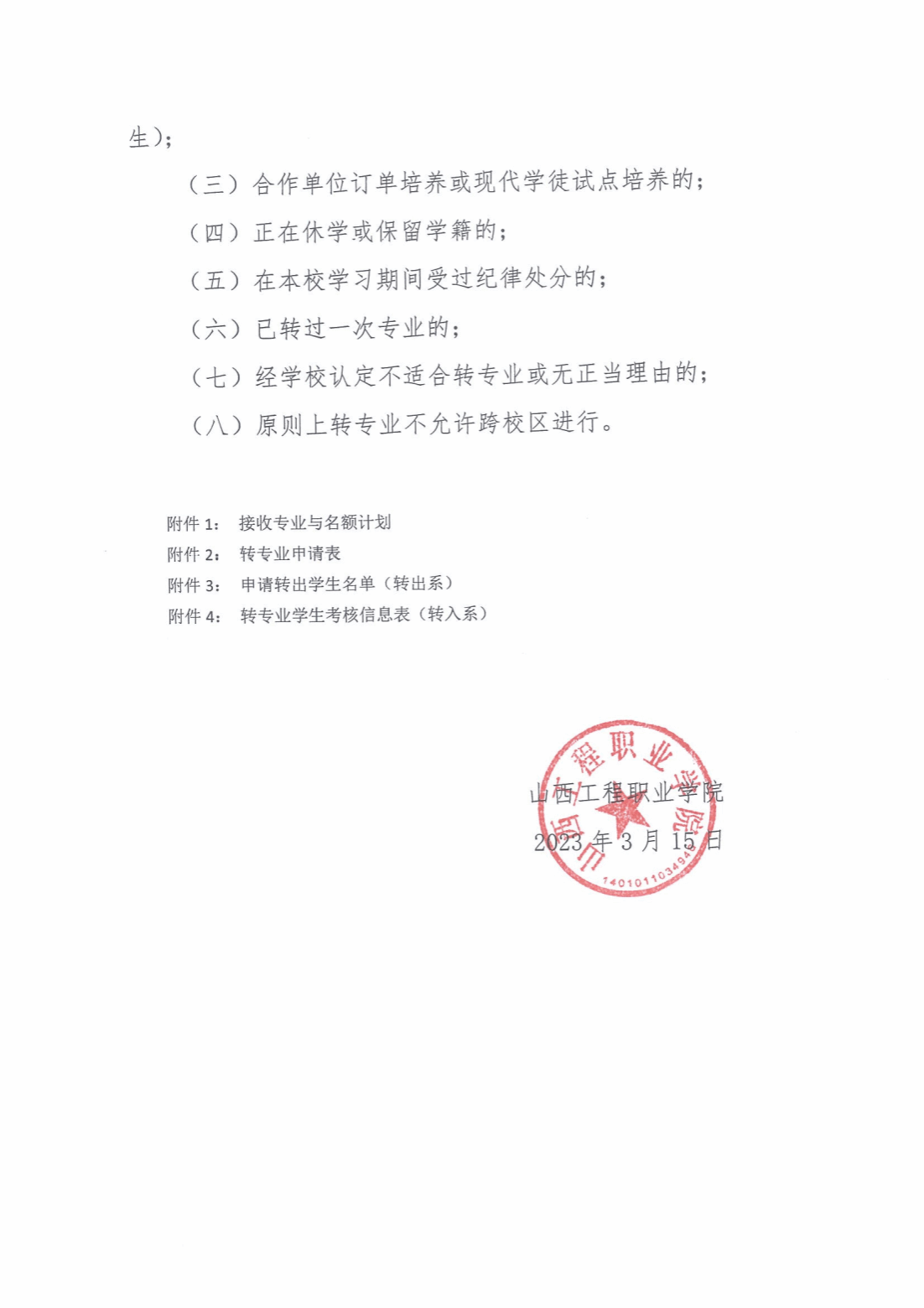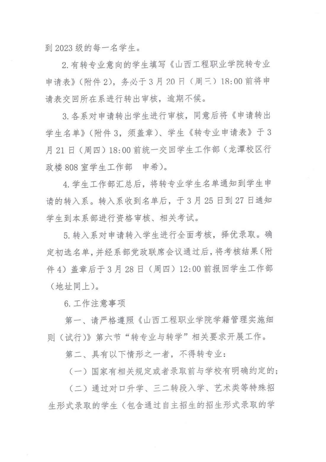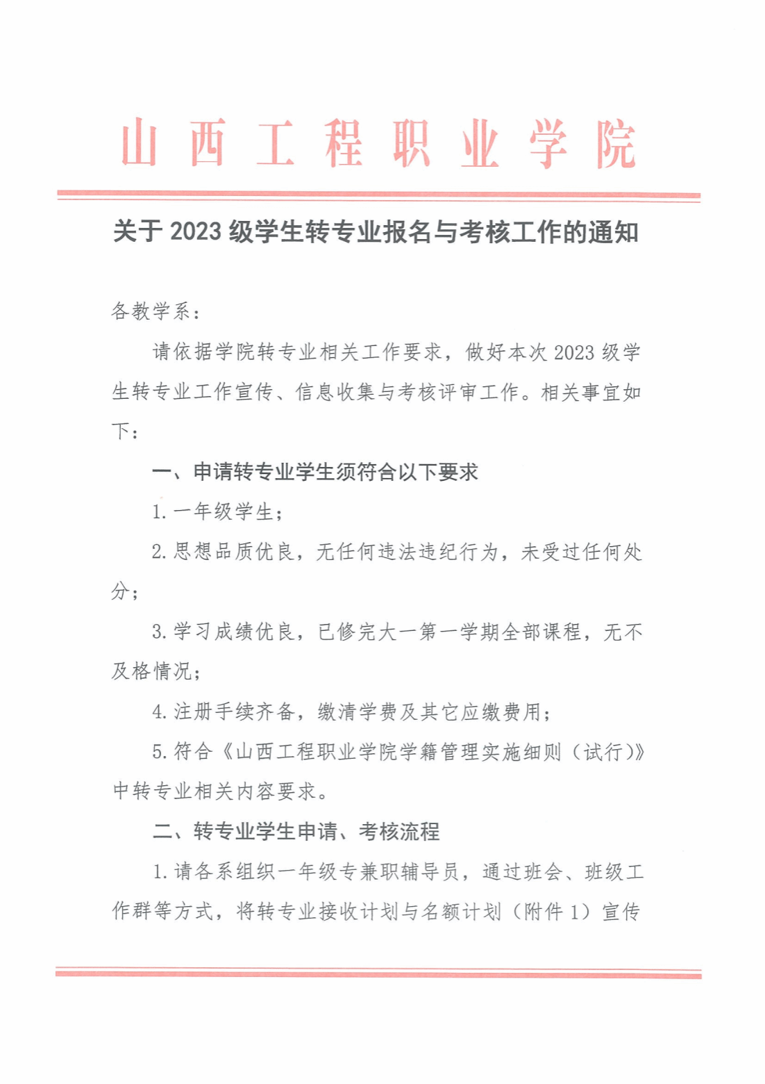 山西工程职业学院关于2023级学生转专业报名与考核工作的通知