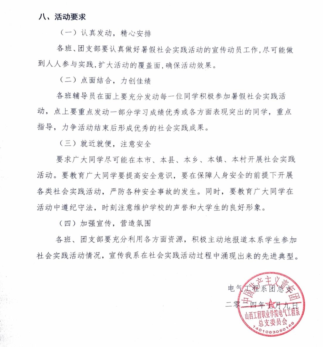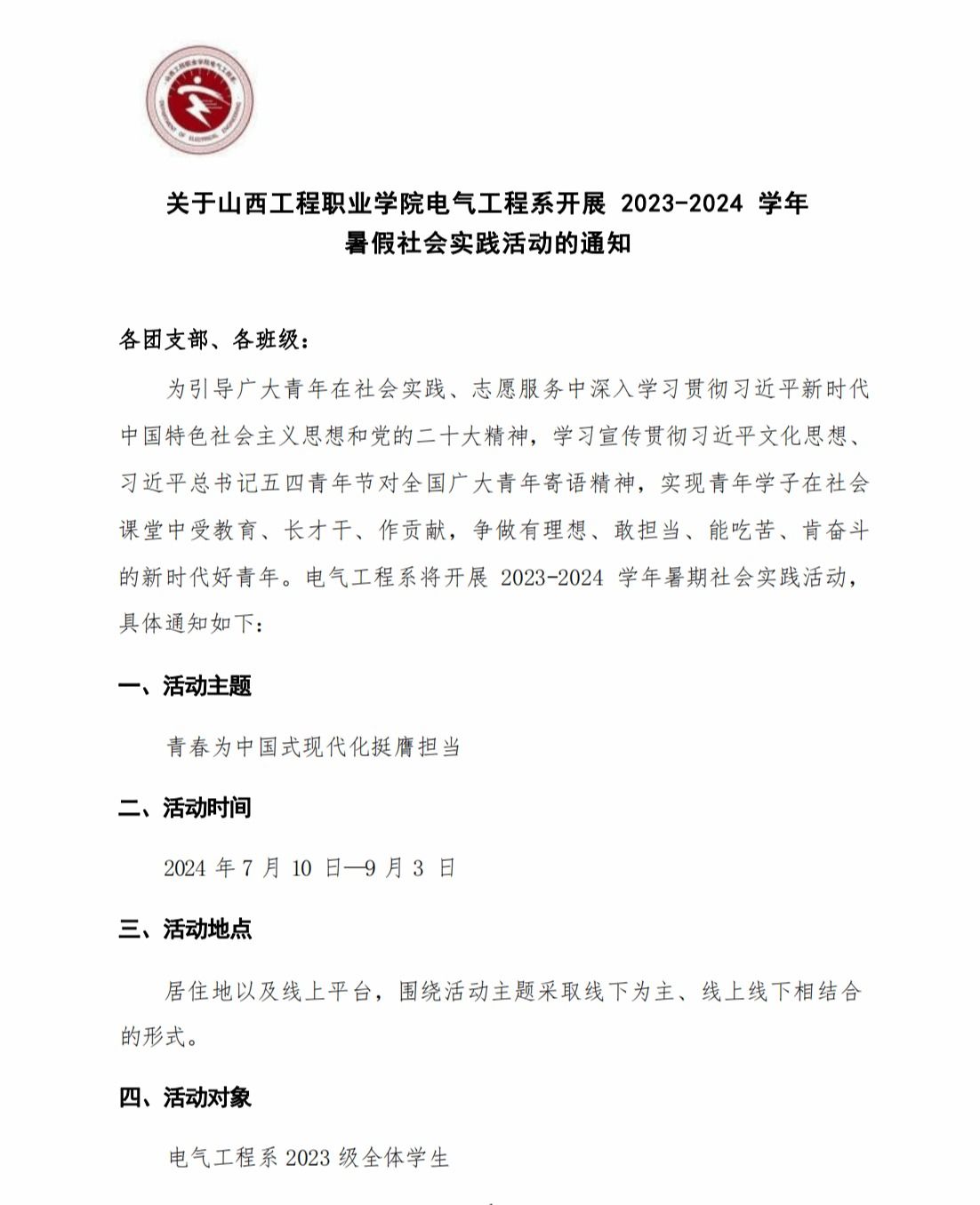 关于山西工程职业学院电气工程系开展2023-2024学年暑假社会实践活动的通知