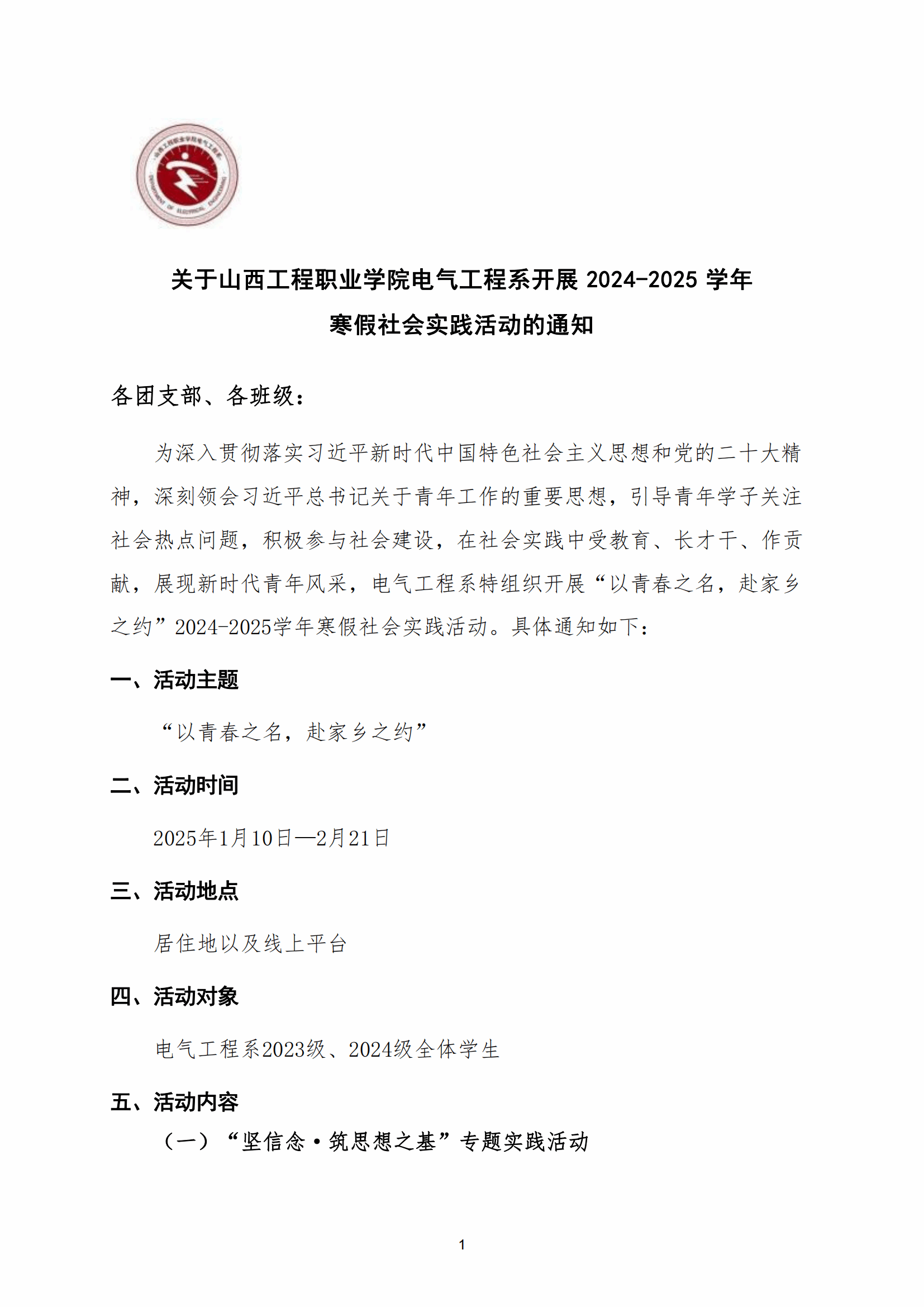 关于山西工程职业学院电气工程系开展2024-2025学年寒假社会实践活动的通知
