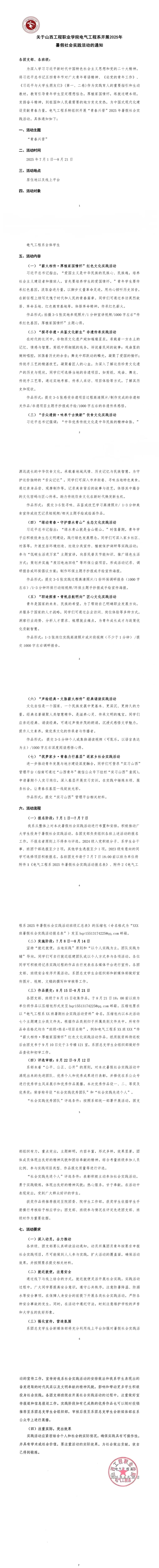 关于山西工程职业学院电气工程系开展2025年暑假社会实践活动的通知