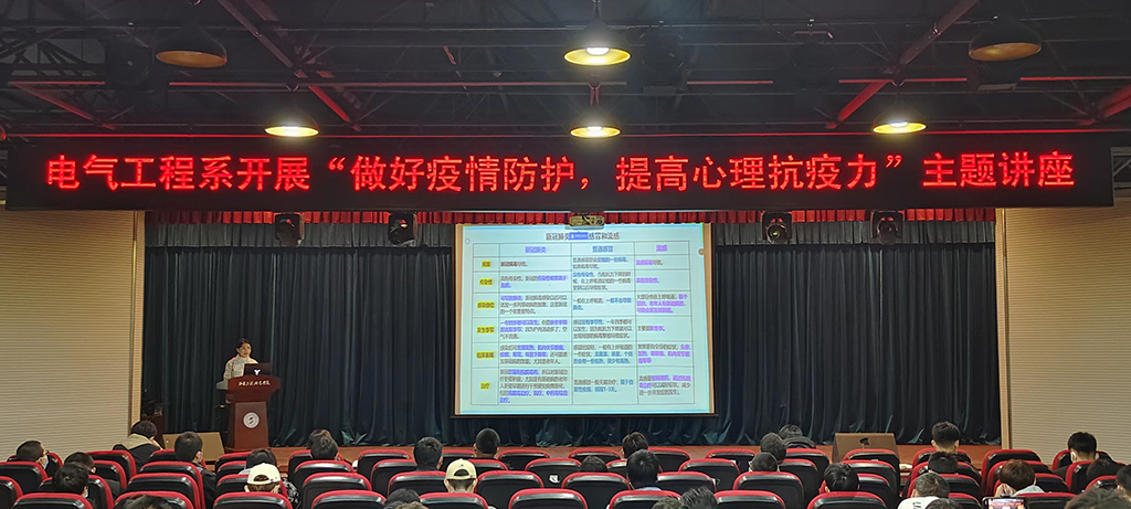 292022-11电气工程系成功举办“做好疫情防护,提高心理抗疫力”主题讲座 11月25日,电气工程系在院图书馆8层报告厅举办“做好疫情防护,提高心理抗疫力”的疫情防控主题讲座,团总支书记纪郑瑜主持,王晓丽老师宣讲,辅导员乔倩、刘媛媛、郭昆...