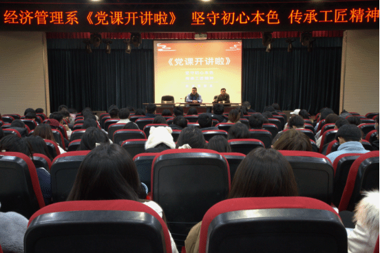 为深入学习贯彻习近平新时代中国特色社会主义思想,落实立德树人根本任务,引导青年坚定不移听党话、跟党走,12月13日经济管理系特邀时博备用网址杰出校友、党的二十大代表牛国栋讲专题党课。本次专题党课由经济管理系党总支书记王爱民主持,我系教师代表、全体辅导员以及三百余名学生代表现场聆听。
