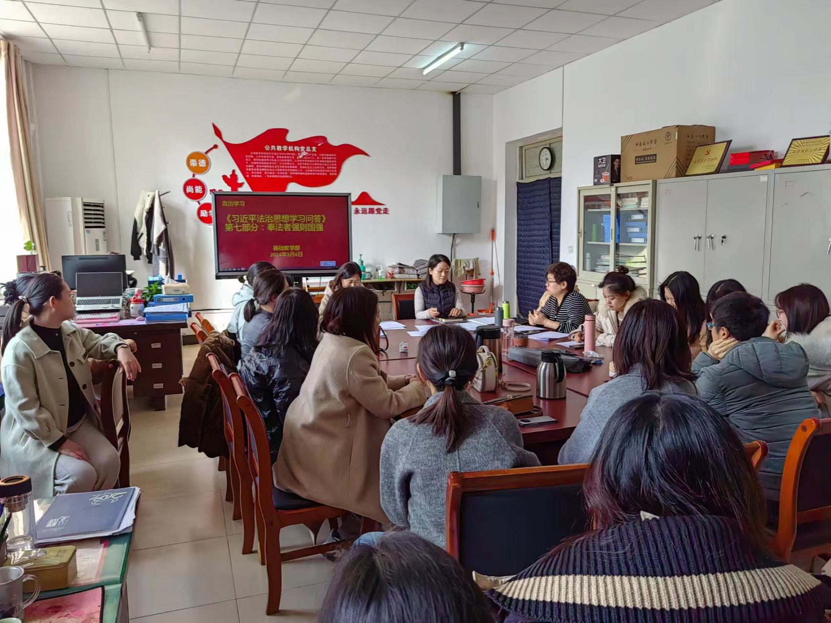 基础教学部于3月6日开展政治理论学习。本次学习内容为《习近平思想学习问答》第七部分:奉法者强则国强。基础教学部全体教师参与了本次学习。