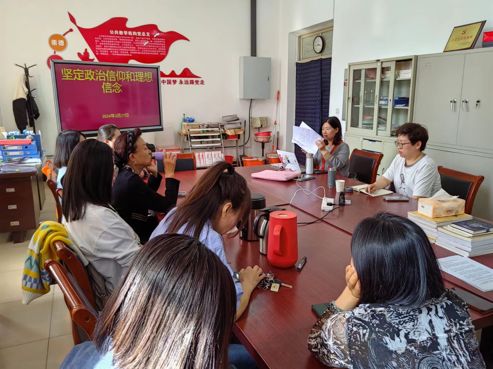 基础教学党支部于3月27日开展专题党课:坚定政治信仰和理想信念,基础教学党支部全体党员参会,基础教学部主任宋姝列席。