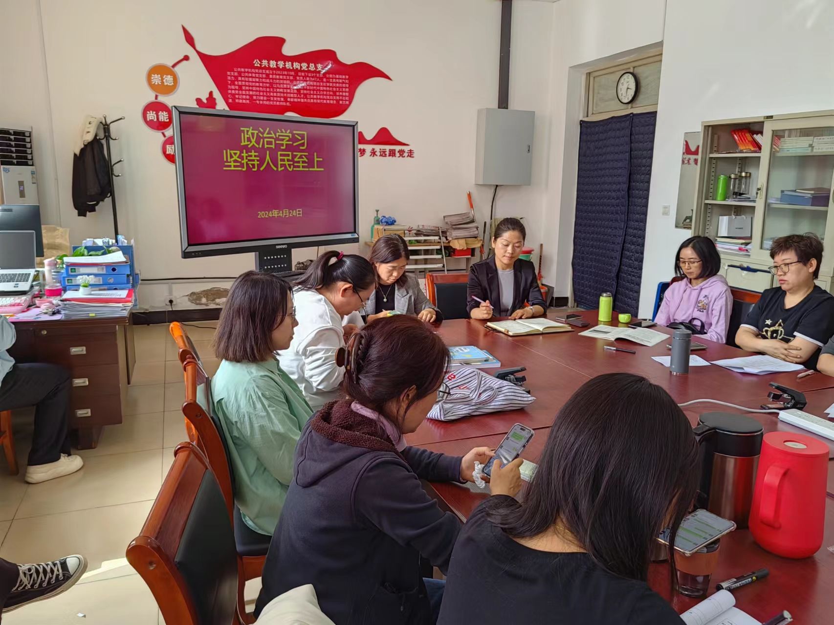 4月24日,基础教学部开展政治理论学习:坚持人民至上。基础教学部全体教师参加会议。