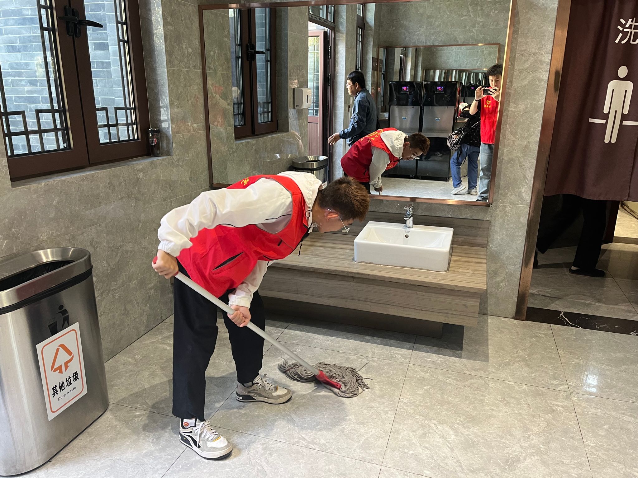 志愿者前往晋商博物馆开展了清扫志愿服务活动。他们身穿统一的志愿者服装,手持清洁工具,对博物馆内的展厅、走廊等区域进行了全面清扫,对展柜、展板等进行了细致擦拭,获得了工作人员的一致好评。