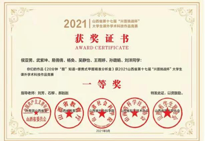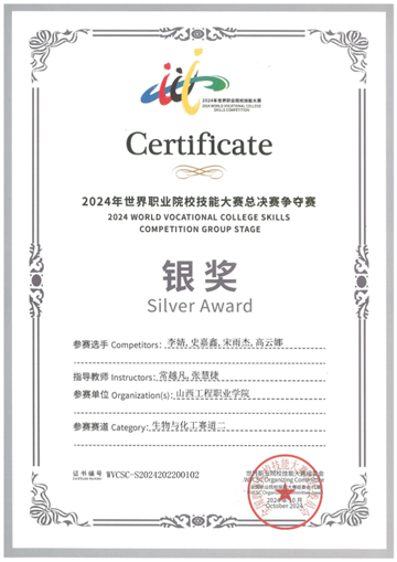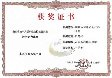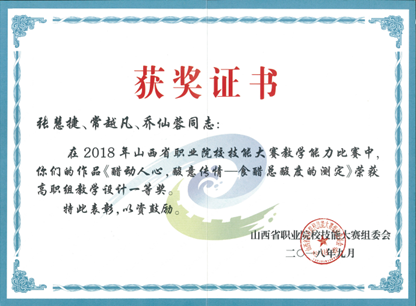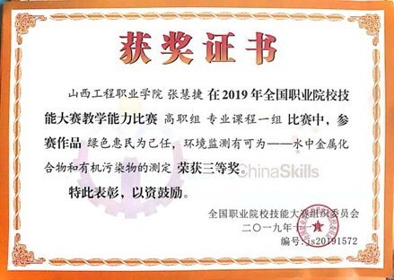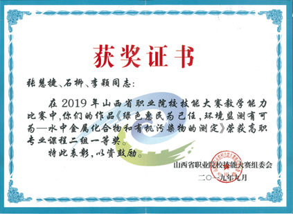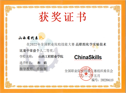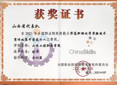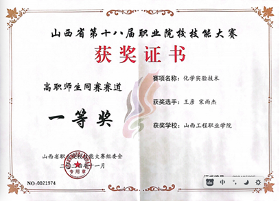 专业荣誉:近年来本专业学生获得世界职业院校技能大赛生物与化工赛道二“化学实验技术”小组银奖,获得全国职业院校技能大赛“化学实验技术”赛项二等奖3次,获得全国职业院校技能大赛“工业分析检验”赛项三等奖 3次,师生团队获技能大赛省级一等奖10余项,获省级创新创业大赛金奖1项,银奖5项、铜奖1项。教师团队获山西省职业院校教学能力大赛一等奖3次,国家级三等奖1次。