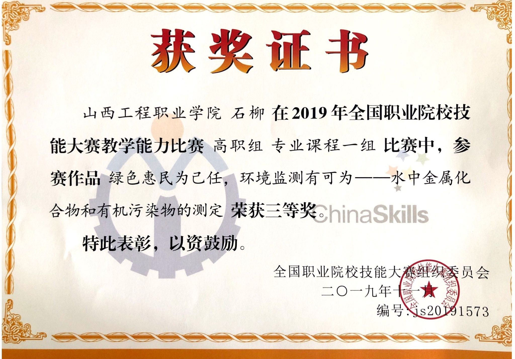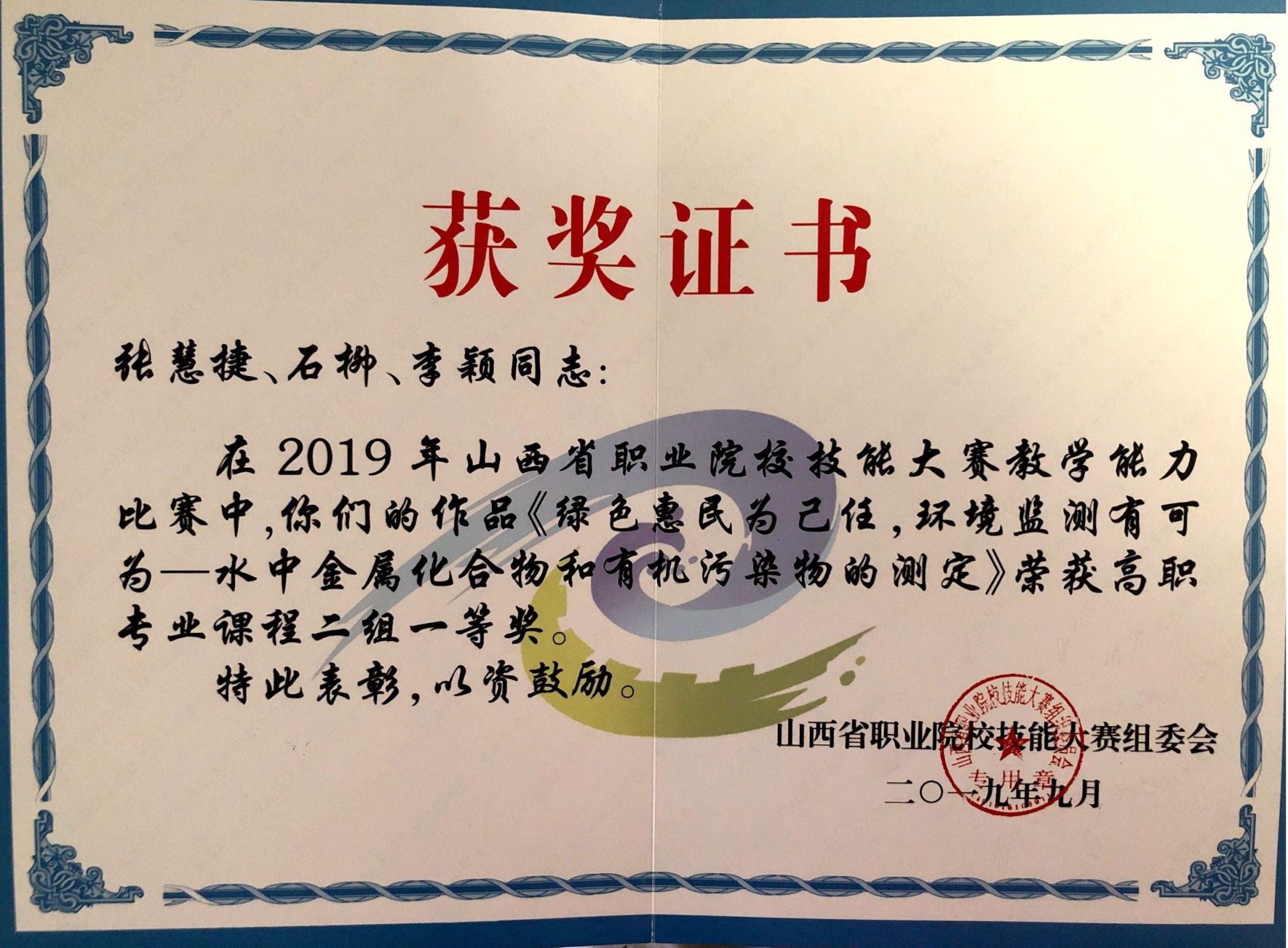 获奖情况:近年来环境监测技术专业学生获得世界职业院校技能大赛总决赛争夺赛铜奖1项,山西省职业院校“环境检测与监测”技能大赛省级一等奖1项,二等奖2项;获得山西省职业院校“水环境监测与治理技术”技能大赛省级二等奖1项,3等奖2项;获得省级创新创业大赛金奖1项,铜奖1项。教师团队获全国职业院校教学能力大赛三等奖1项,山西省职业院校教学能力大赛一等奖2项。