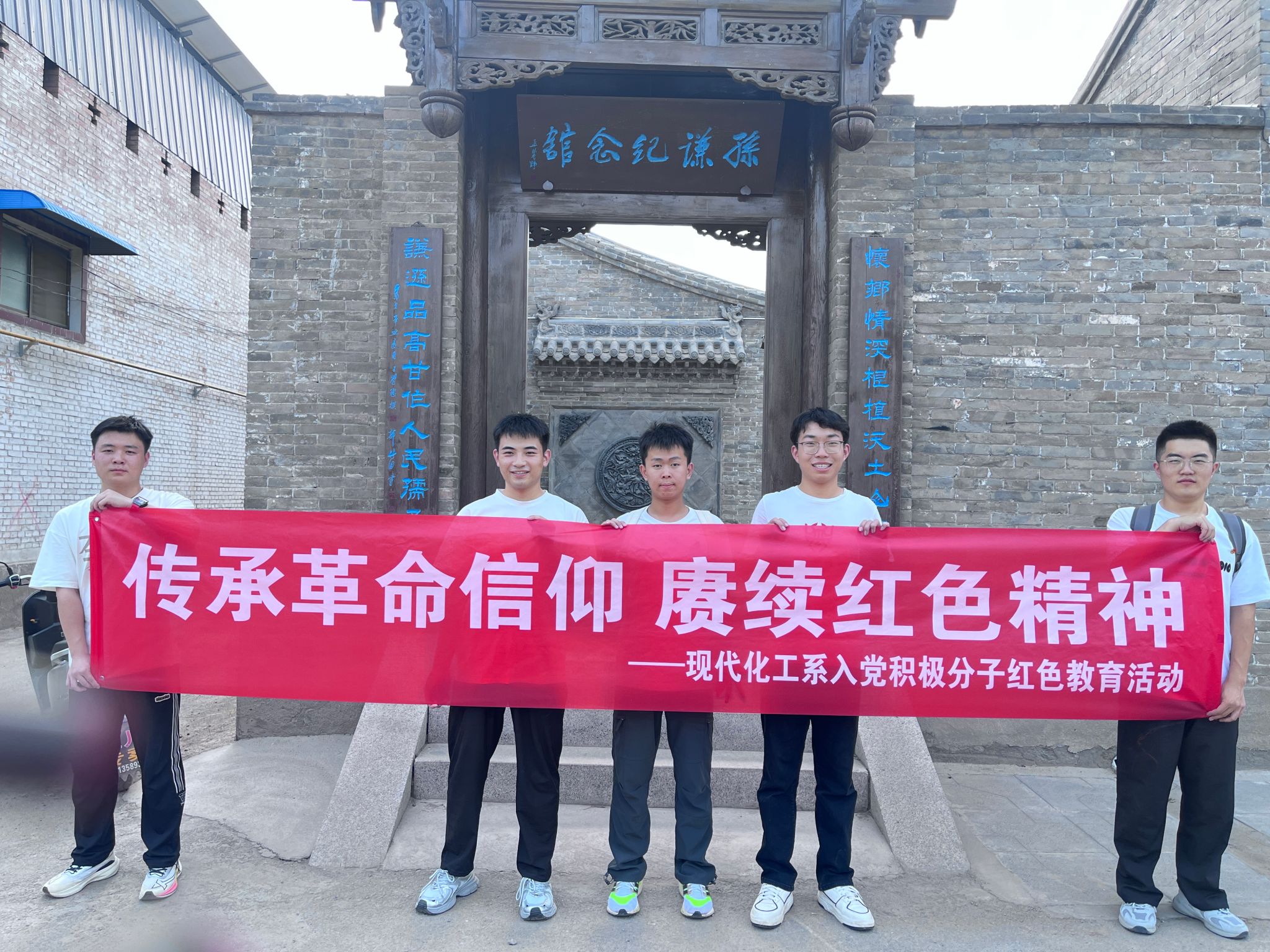 2024年7月8日-7月11日,现代化工系“绿色化工使者”实践队在吕梁市文水县开展了为期四天的大学生暑期“三下乡”社会实践活动,活动由团总支书记张立涛和辅导员孙翠桃带队,六名入党积极分子参加。本次活动中开展了追寻红色足迹、学习历史文化、助农实践活动和宣传环保知识等。