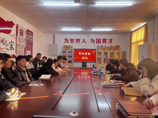 为了引导师生以良好的心态和精神面貌投入新学期工作和生活,现代化工系于2025年2月26日下午在系部党建活动室举办了以“聚焦开学第一课:守底线 育新人”为主题的“书记有约”活动。现代化工系党总支书记胡希明、党总支副书记杨立忠、系团总支书记张立涛、系全体辅导员、班主任以及学生代表参加活动。