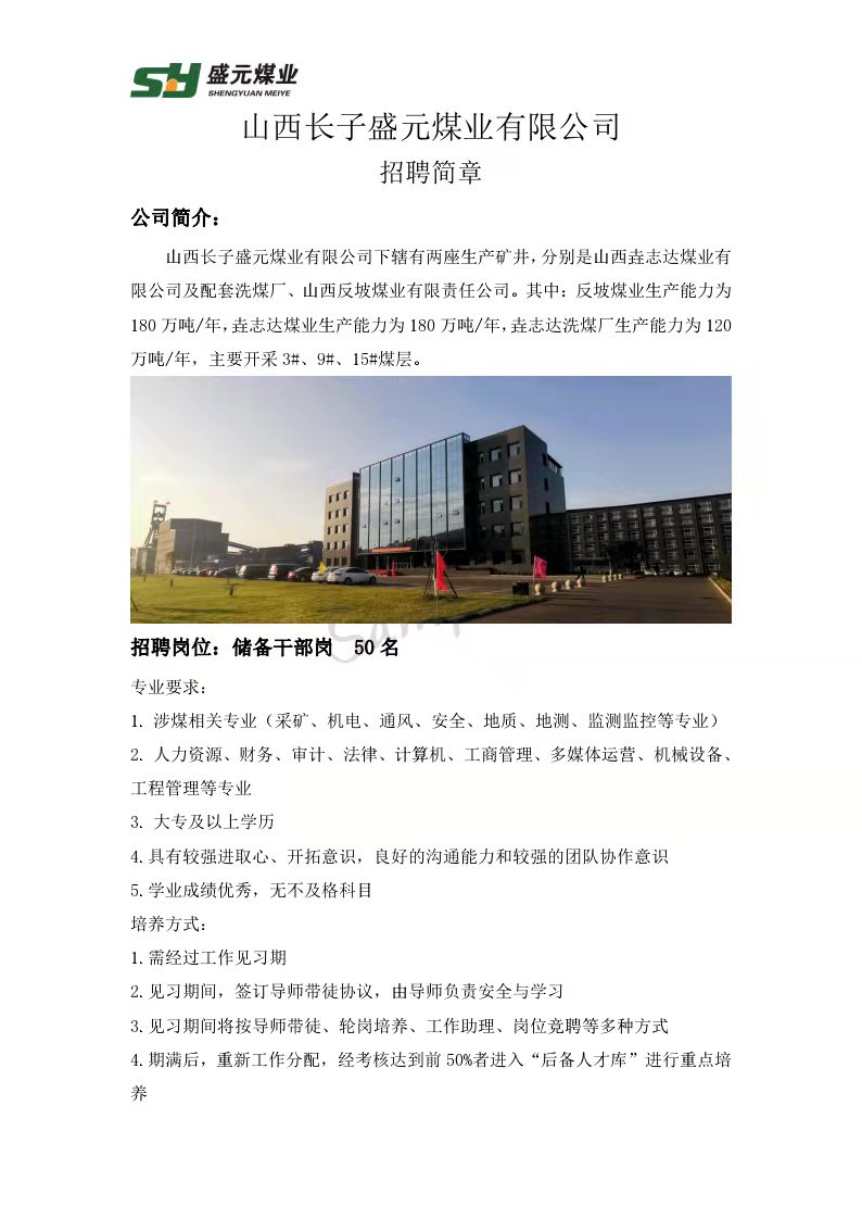 山西长子盛元煤业有限公司招聘简章