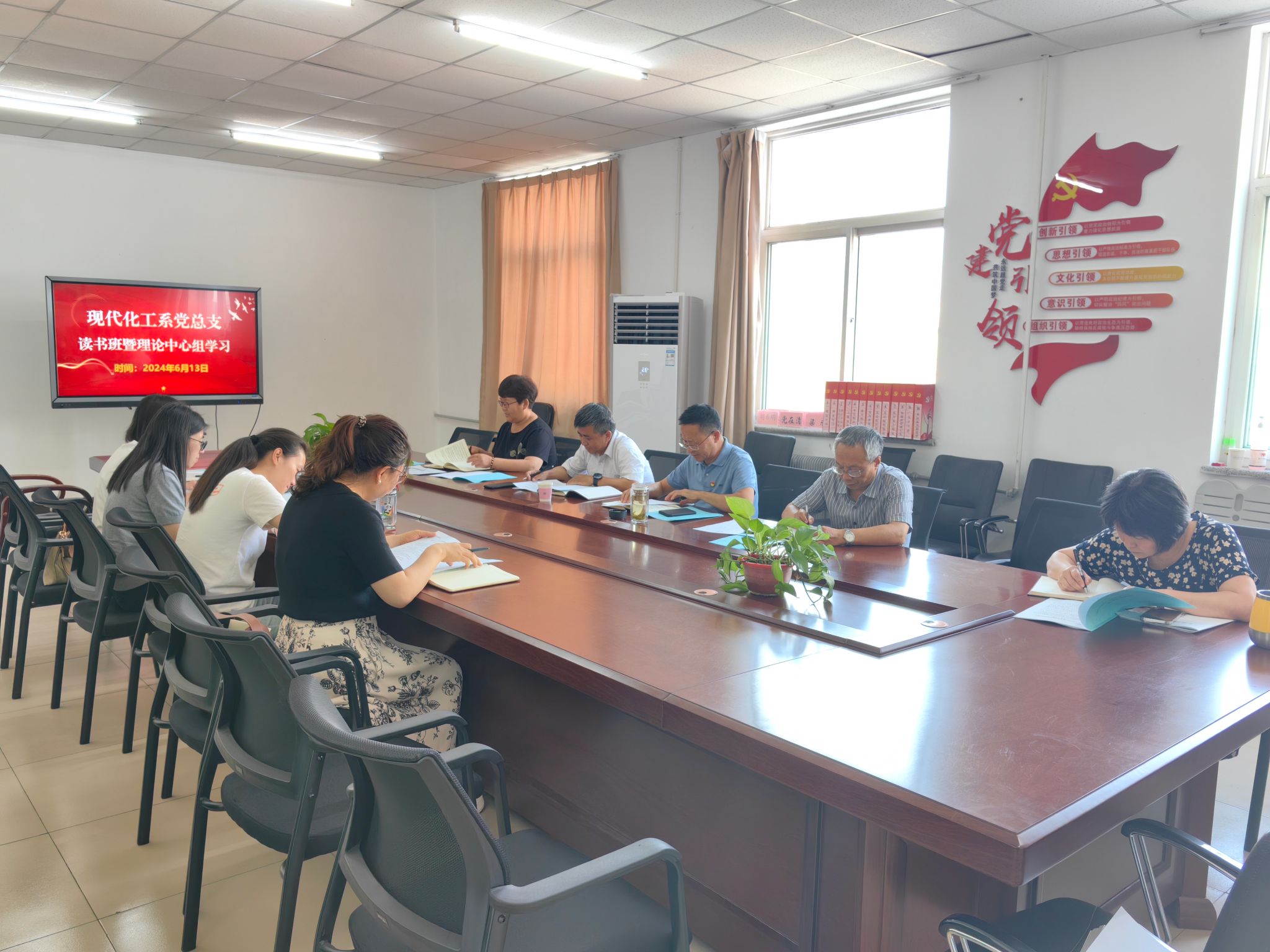6月13日上午,现代化工系党总支在党建活动室306召开理论中心组学习会议暨党纪学习教育读书班交流研讨,会议采取专题领学、研讨交流等方式,学习了习近平总书记关于全面加强党的纪律建设的重要论述和《条例》等。会议由系党总支书记胡希明主持,理论中心组成员、所属党支部纪检委员、辅导员参加,冯国平到会督导并作点评。